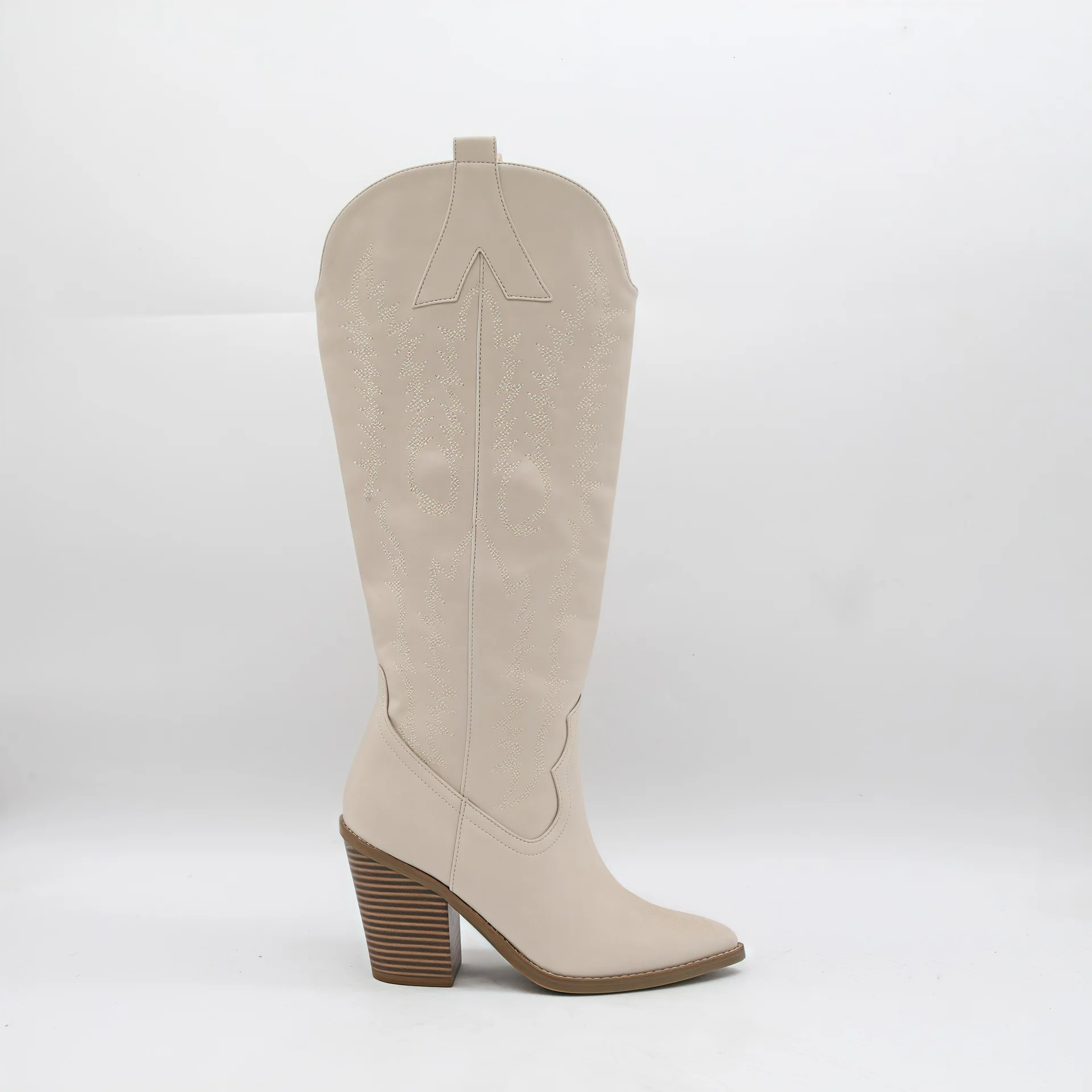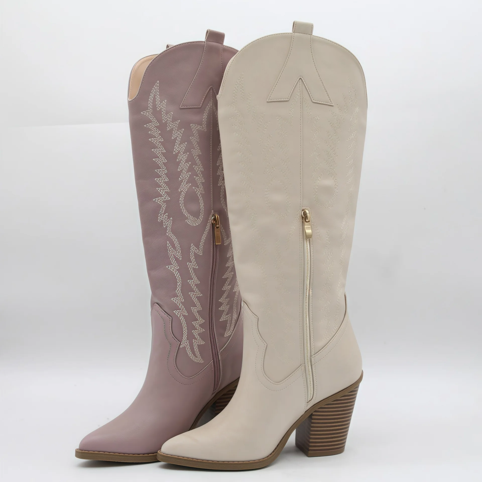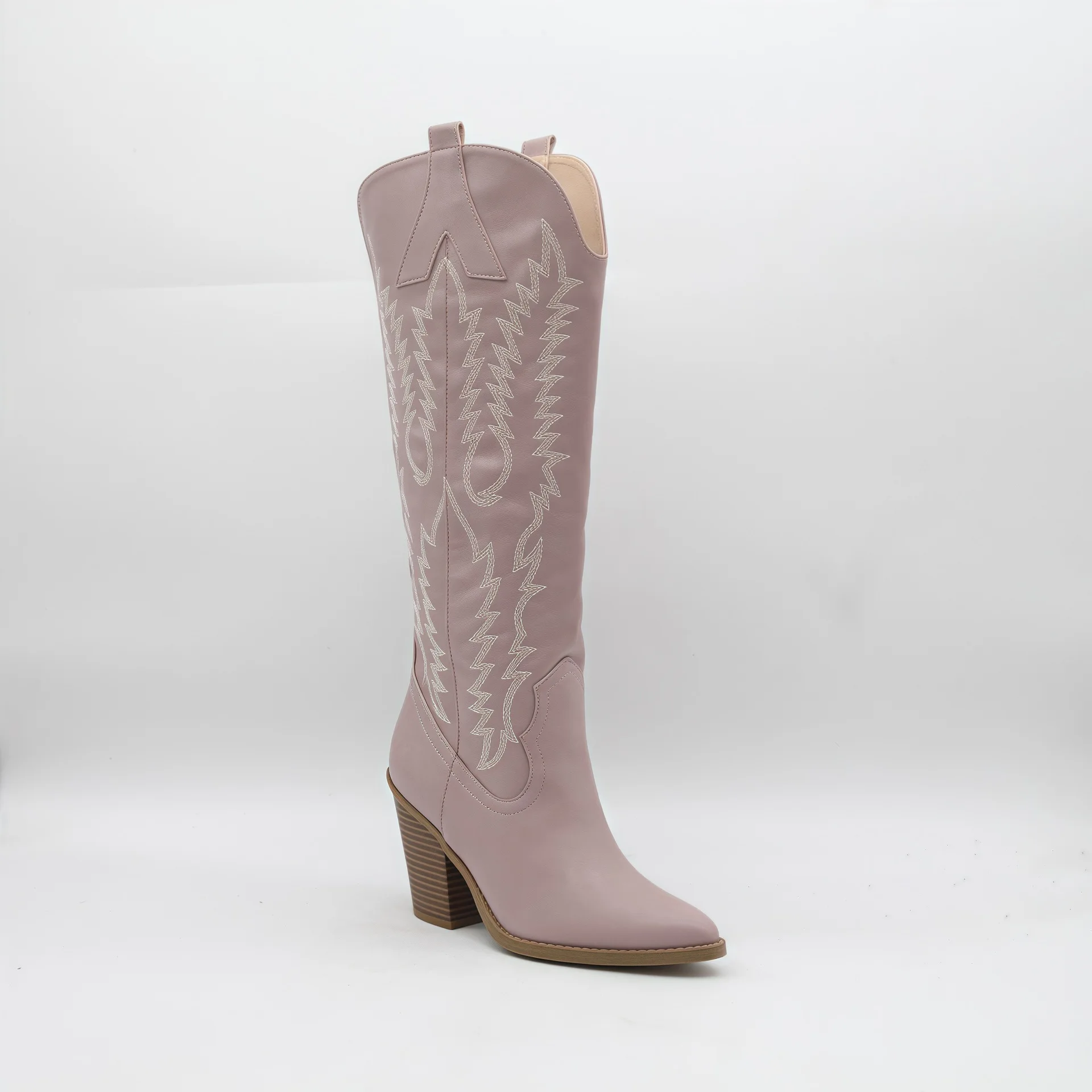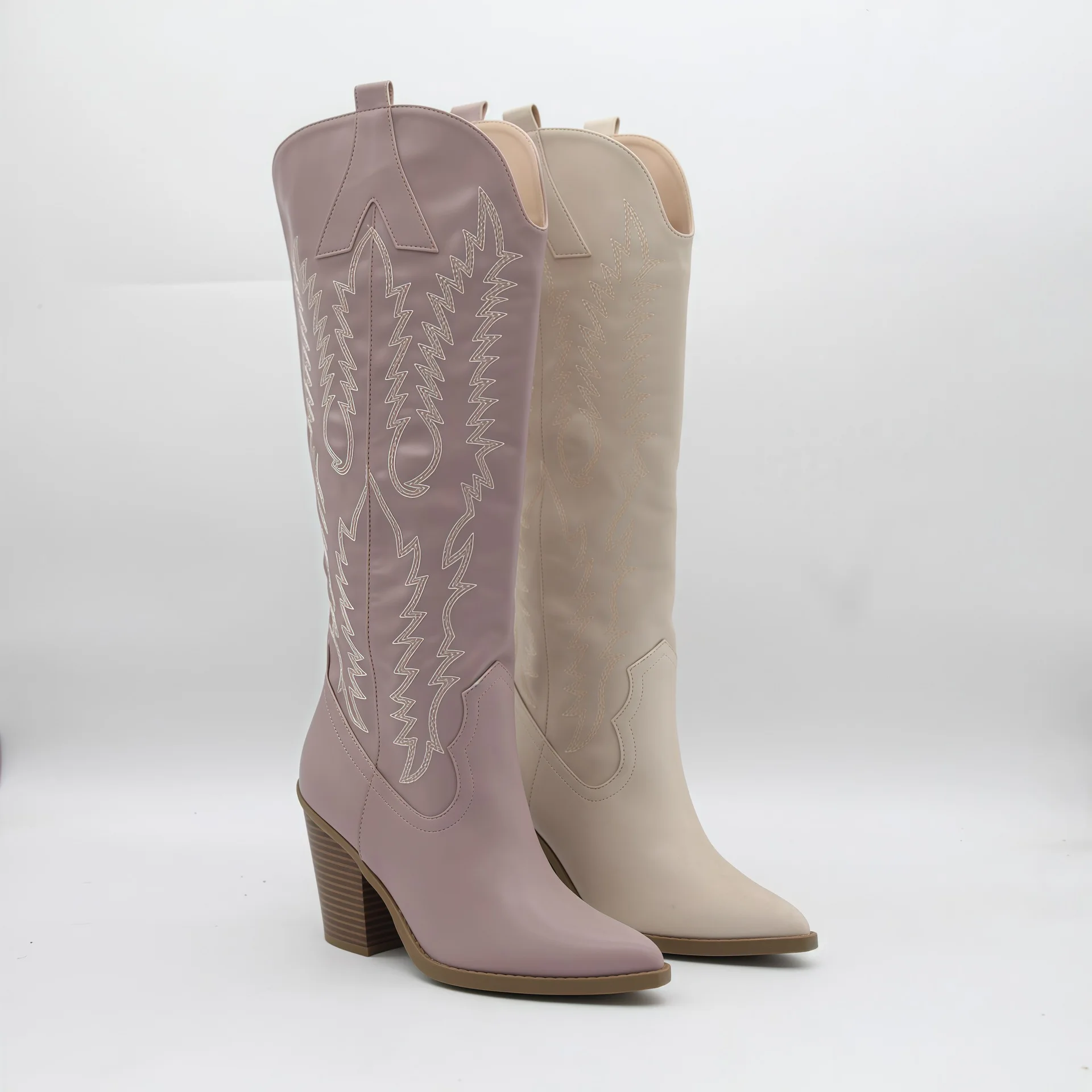 BUSY GIRL HQ1160 Women's Light Purple Western Cowboy Boots with White Embroidery Pointed Toe Block Heel Boot for Women Wholesale