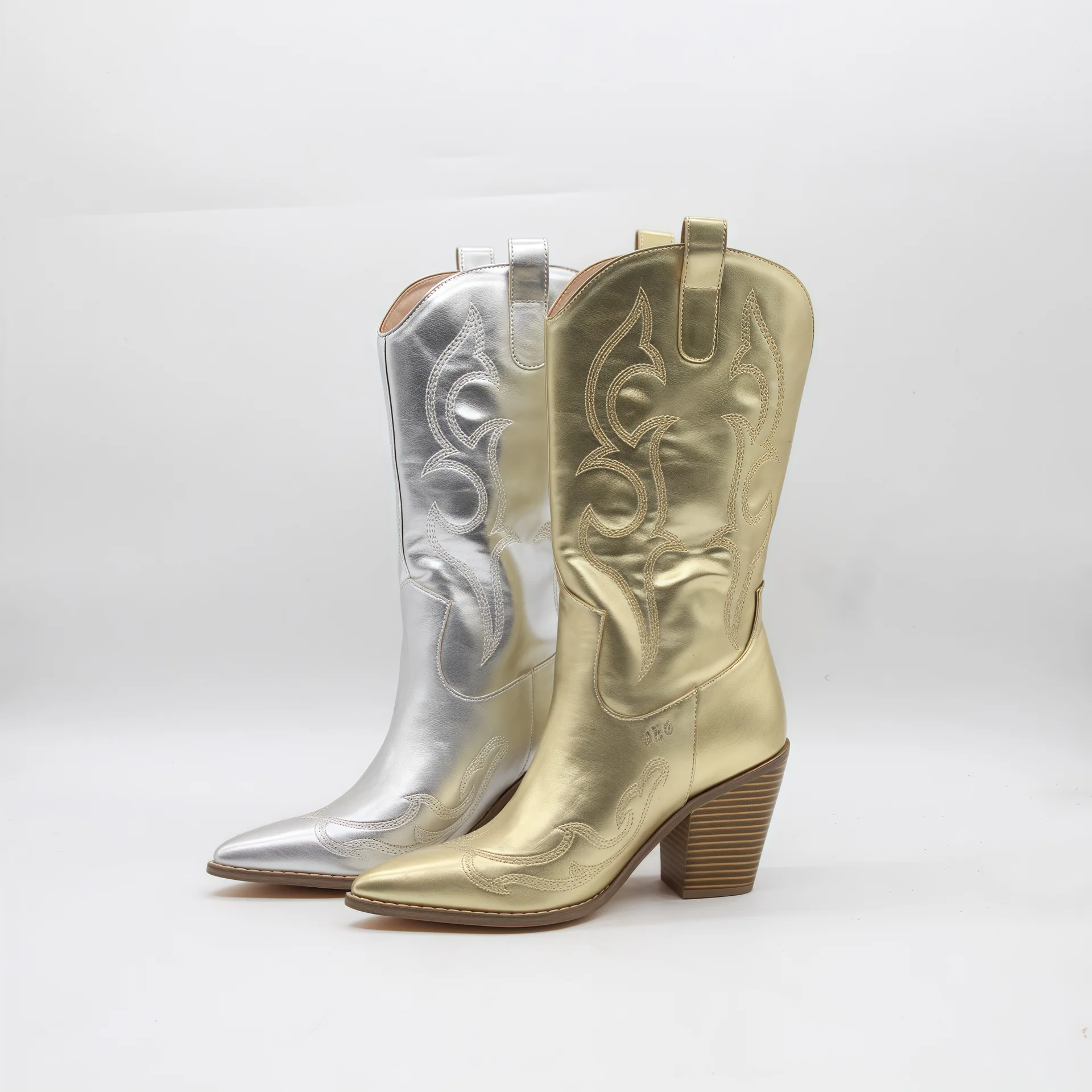 BUSY GIRL HQ1162 2026 Midi Boots for Women New Sexy Versatile Pointed Banquet Coarse Heel Middle Heel Knight Boots for Women