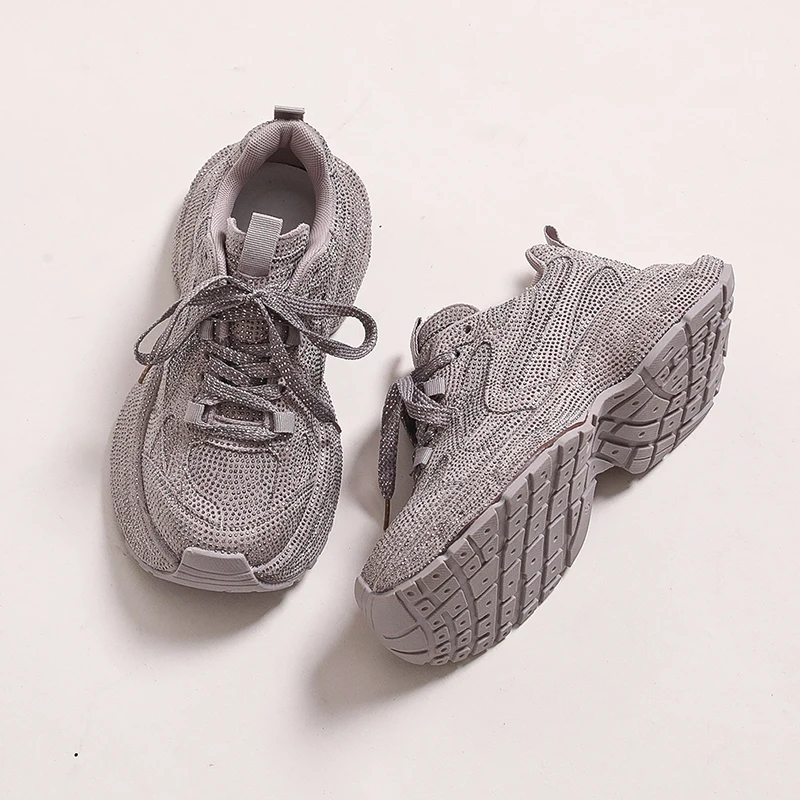 Luxury Shoes Women 2026 Brand Design Bling Sequined Women's Casual Shoes Fashion Female Chunky Sneakers Stylish Sport Shoes
