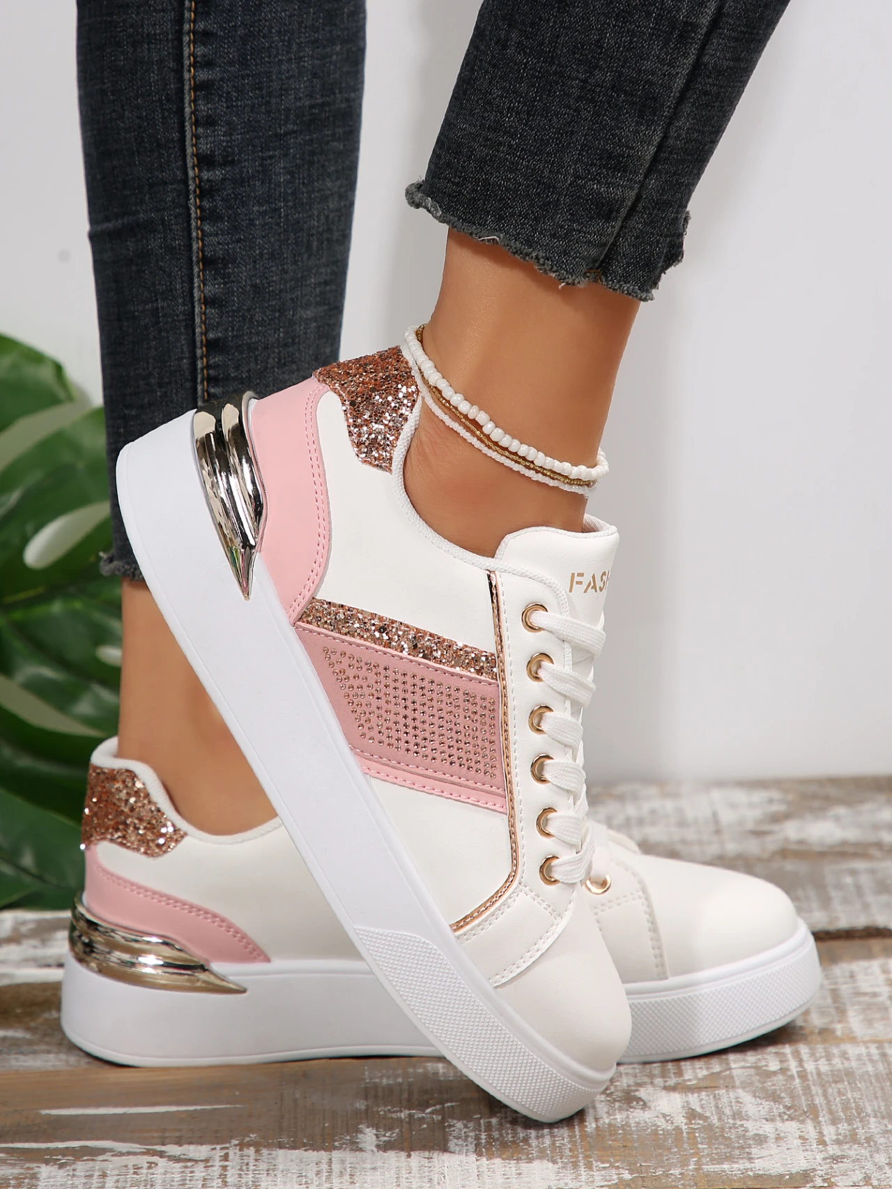 2026 Women's Chunky Rhinestone Shoe Buckle Causal Walking Shoes Glitter Platform Sneakers for Women Zapatillas Zapatos De Mujer