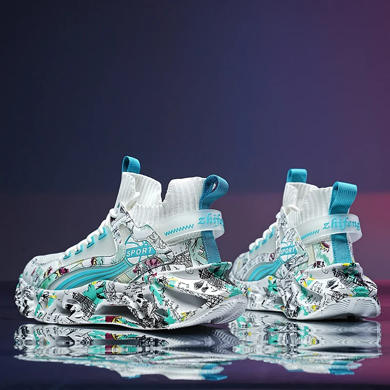 2023 Platform Sneakers Gold Men Chunky Sneakers Fashion Shoes Black Wedge Male Breathable Outdoor Running Colorful Sport Shoes