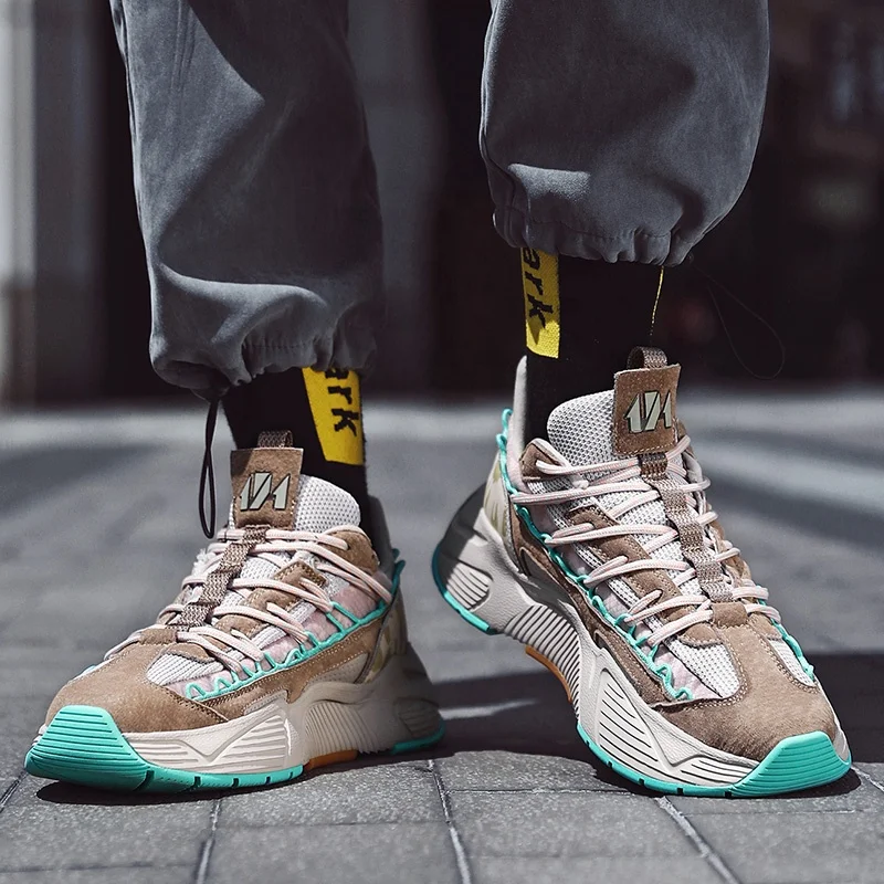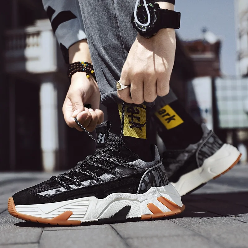 New Vulcanized Mesh Sneakers Men's Winter Walking Dad Shoes Black Chunky Fashion Sport Shoes