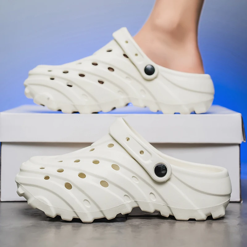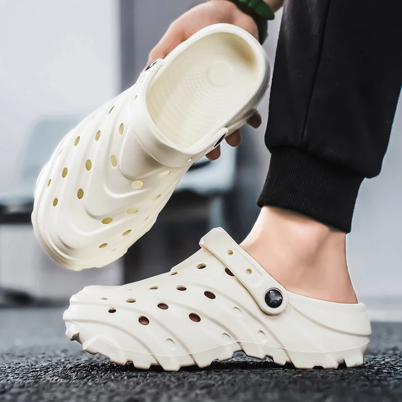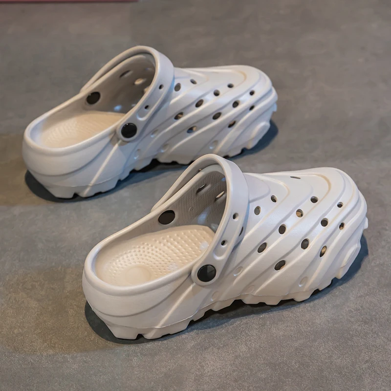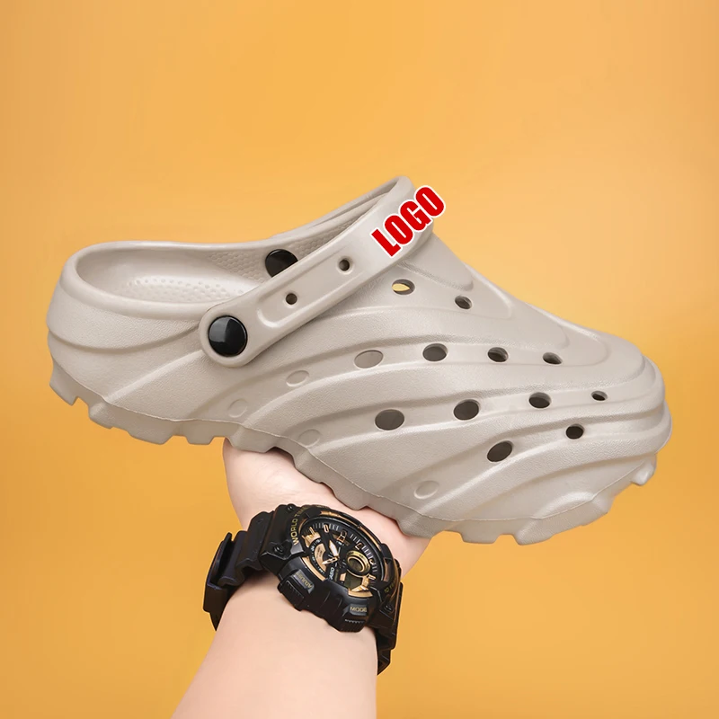 2026 Custom Beige Flat Clogs for Female New Summer Fashion Sports Garden Shoes with Thick Sole and Breathable Feature