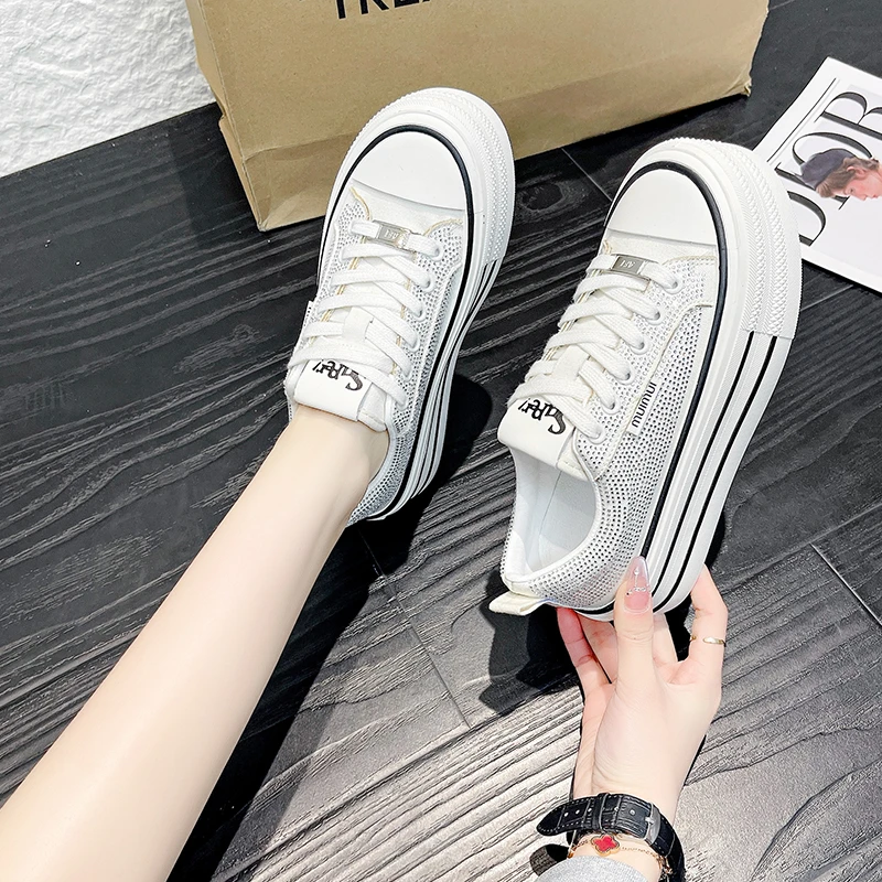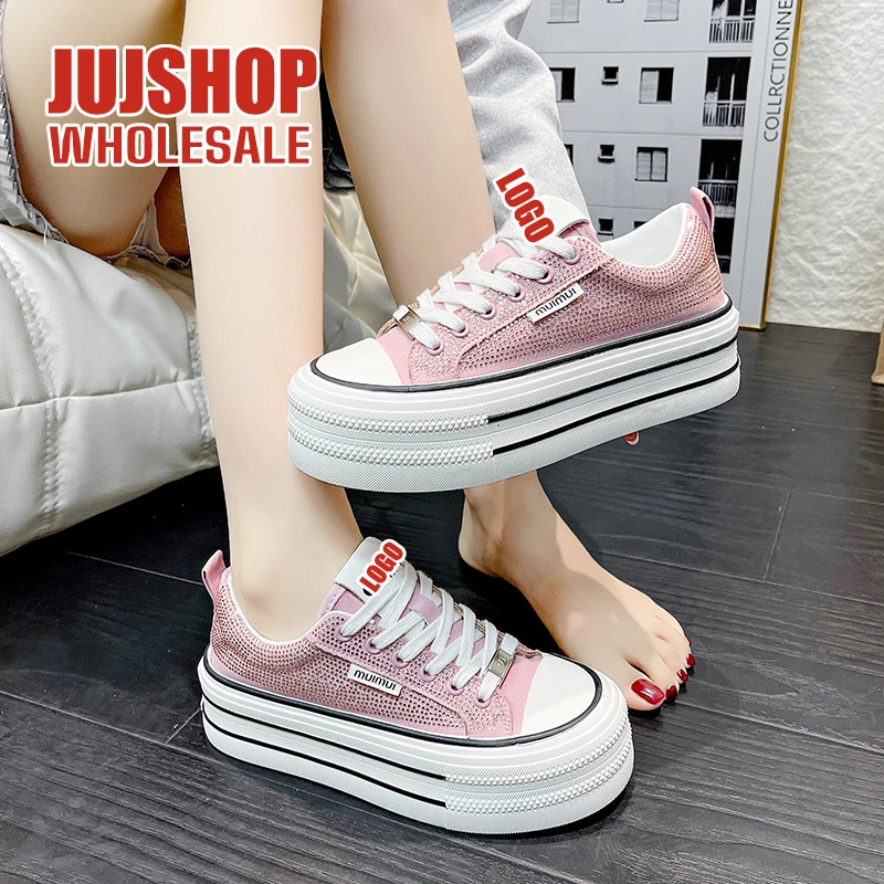 Custom Korean Women's Casual Platform Sneakers Sports Daddy Shoes Vulcanized Canvas Tennis Running Walking Shoes