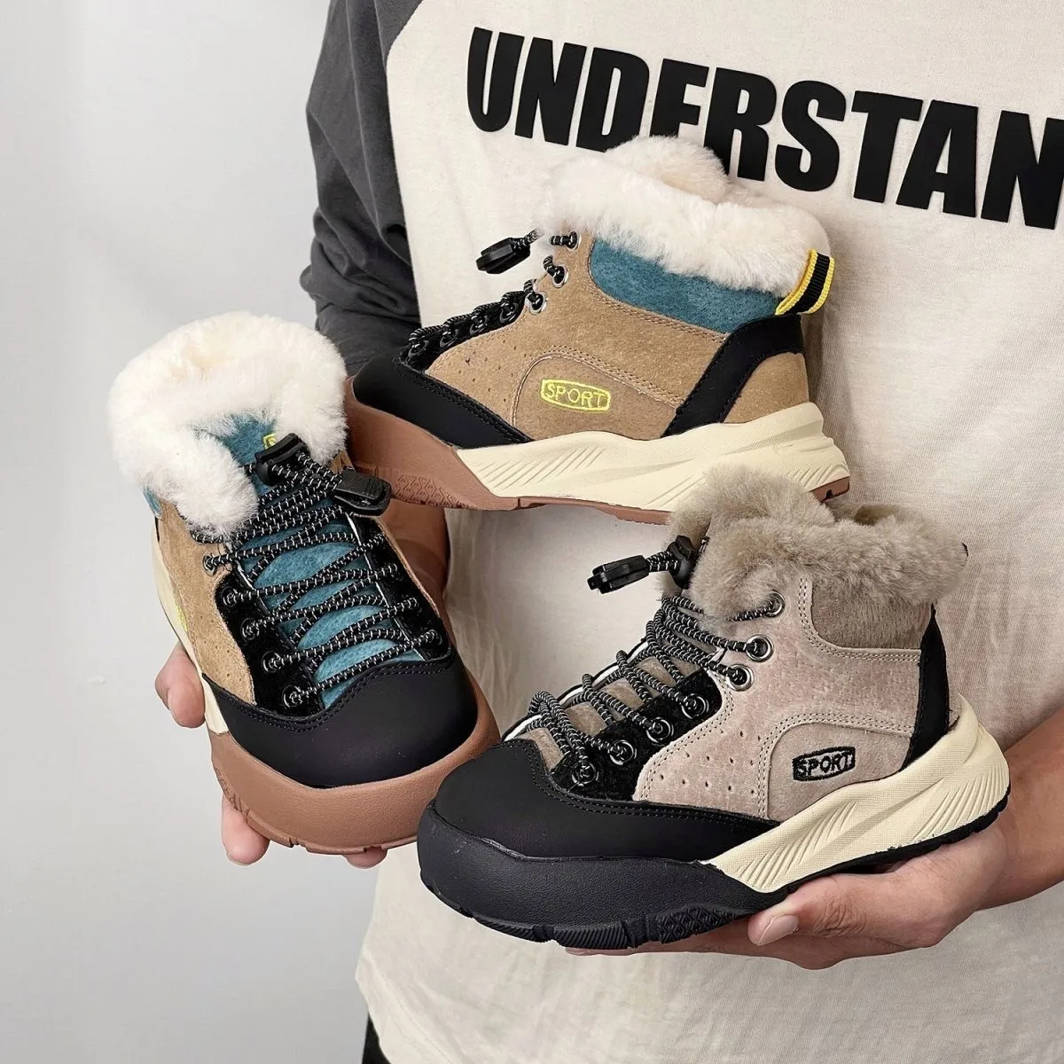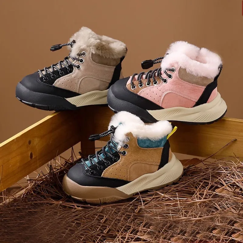 Custom New Inspired Boys & Girls School Sports Sneakers Outdoor Warm Fur Snow Boots Hiking Kids Cotton Sports Shoe for Girls