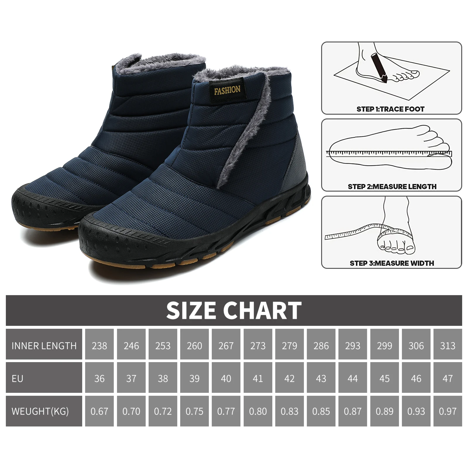 Custom Men's Fur Lined Warm Winter Boots Waterproof Insulated Outdoor Sport Hiking Shoes PU Insole Anti-Slip Feature for Winter