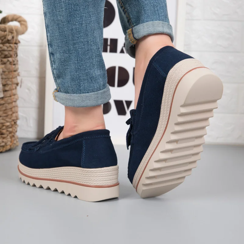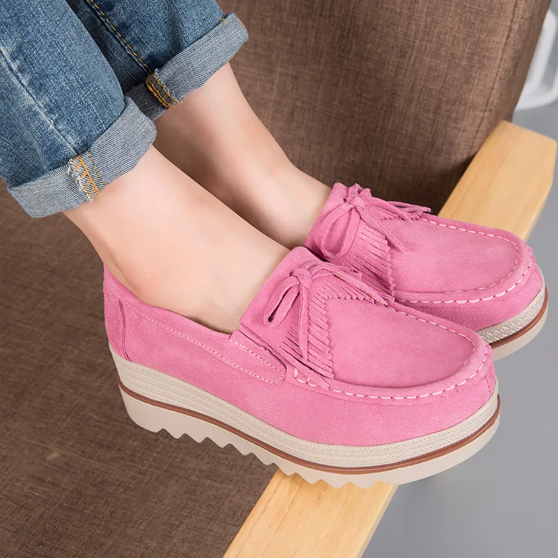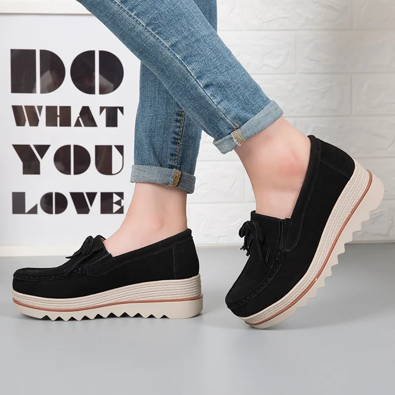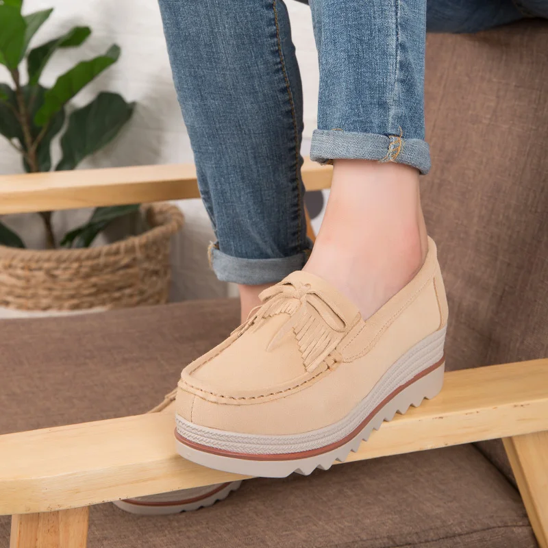 Women's Genuine Leather Casual Heel Platform Loafer Height Increasing Light Female Casual Walking Shoes Breathable Chaussure