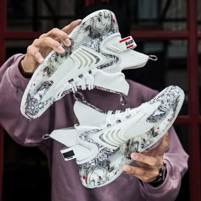 Chunky Gym High Top Men's Court Sneakers Winter Walking Mesh Male Fashionable Big Camouflage Casual Basketball Style Sneaker