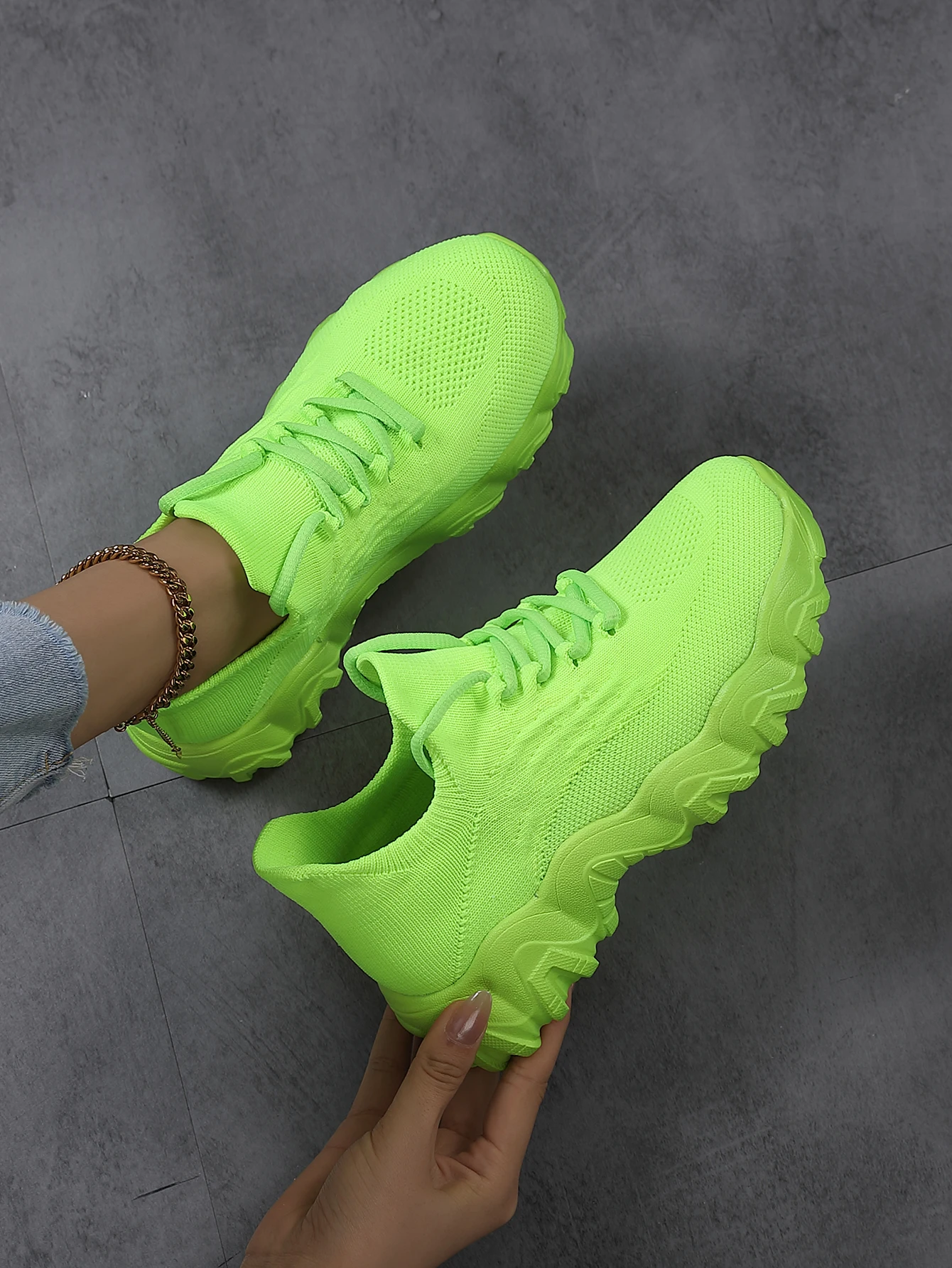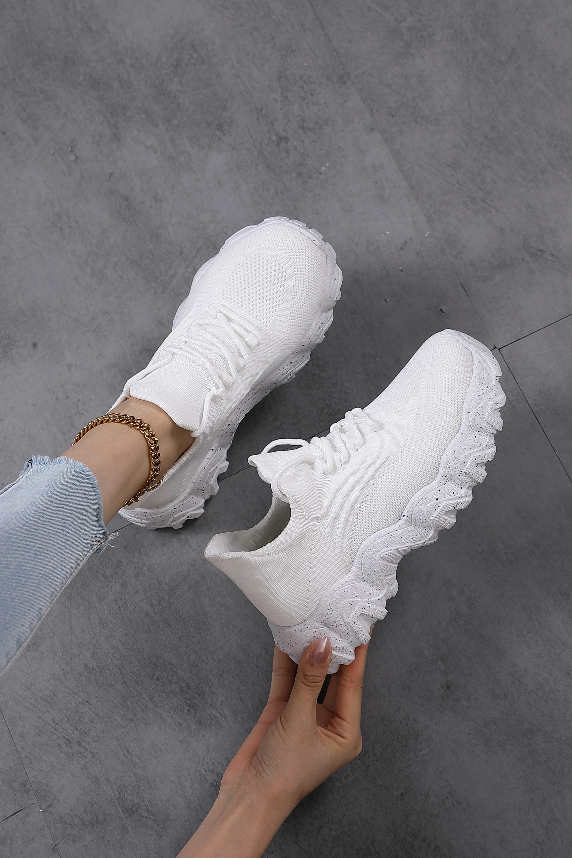 Zapatos De Mujer Women's Chunky Heel Sneakers Fashion Trend Casual Shoes with Thick Sole Upper Platform Customizable Sock Design
