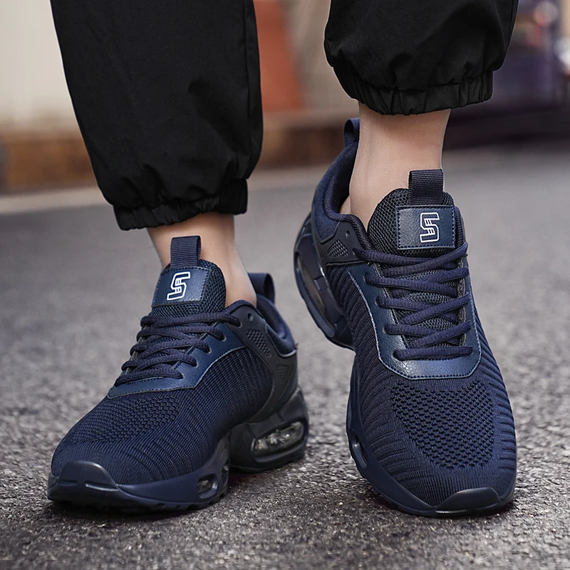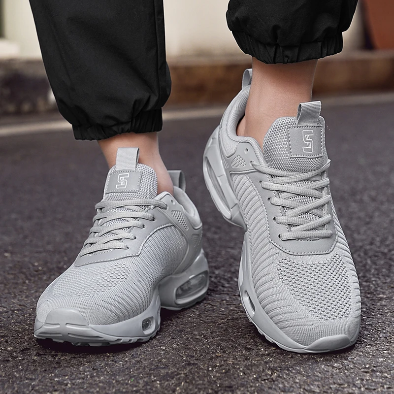 Men's Casual Sports Shoes High Quality Air Cushion Flying Woven Wear-Resistant Lace-Up Height Increasing Cross-Border High-Trend