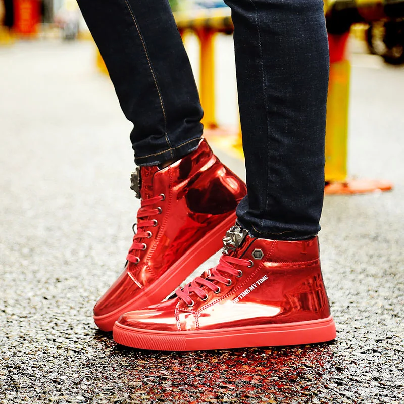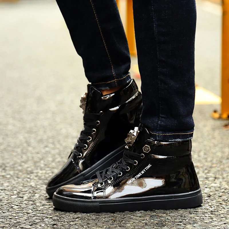 Men's Luxury High Cut Sneakers Sports Casual Style Lace-Up Closure Rubber Insole Cotton Lining-Fashion Trend for Winter Season