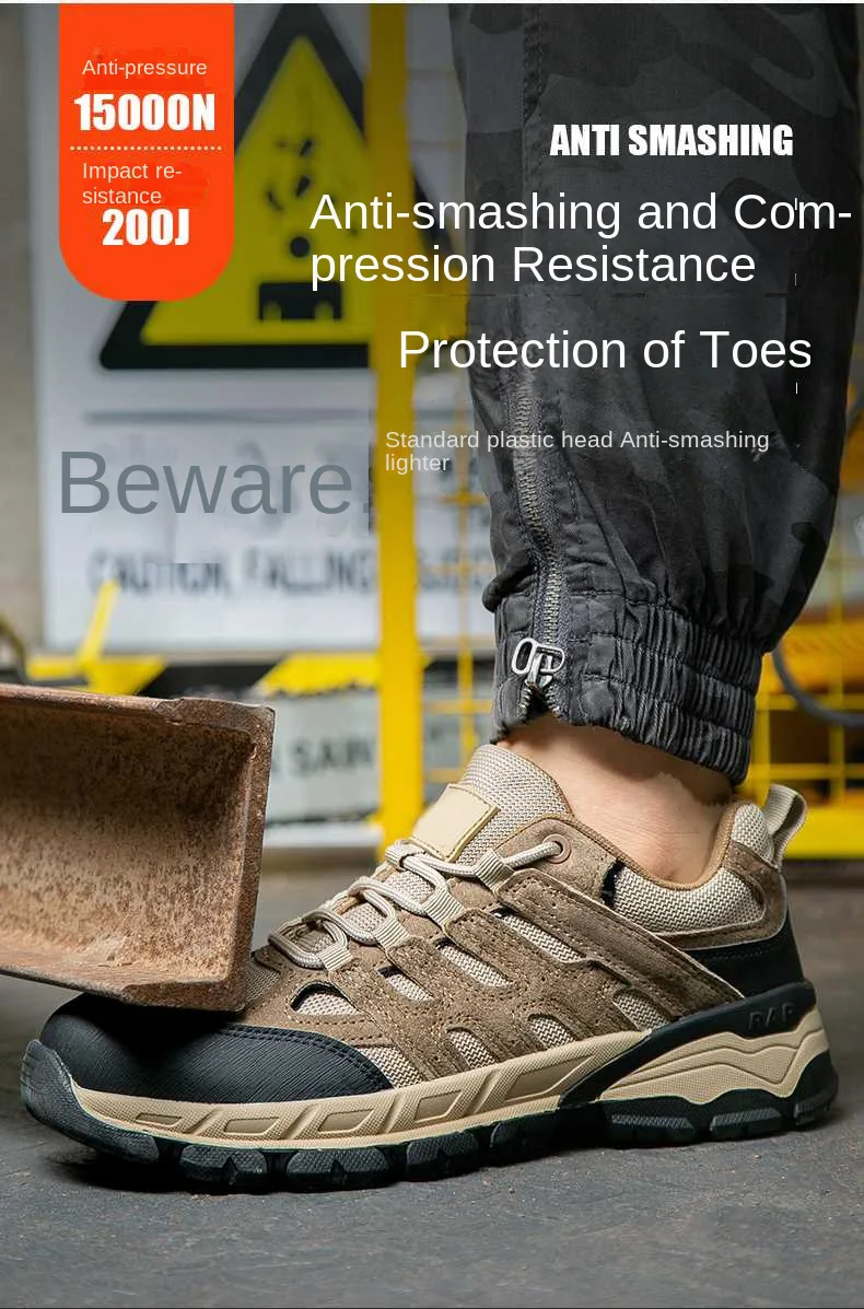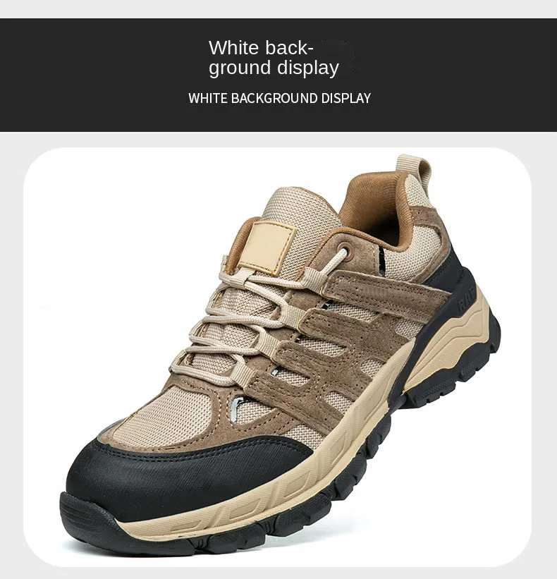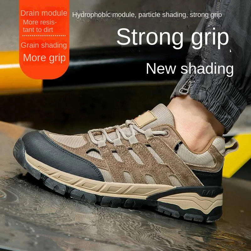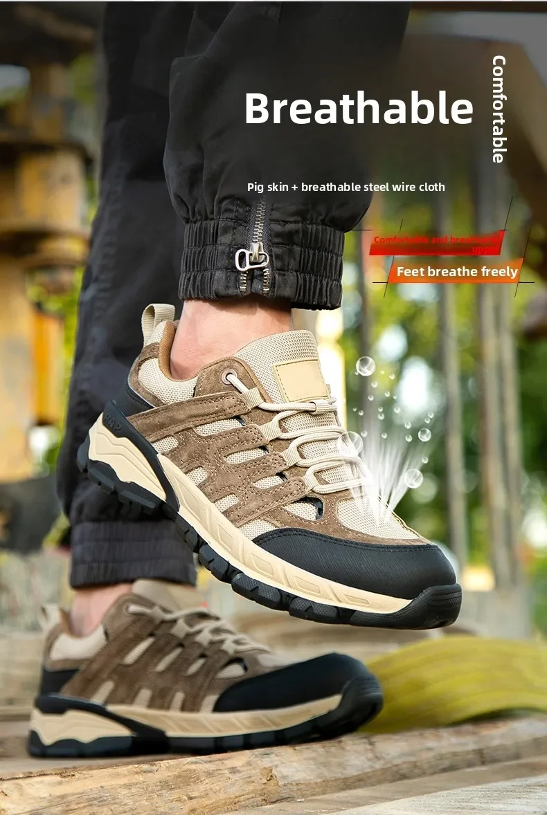 Men's Summer Breathable Steel Toe Work Shoes Lightweight Anti-slip Anti-static Leather Upper Rubber Mesh Insole for Hiking