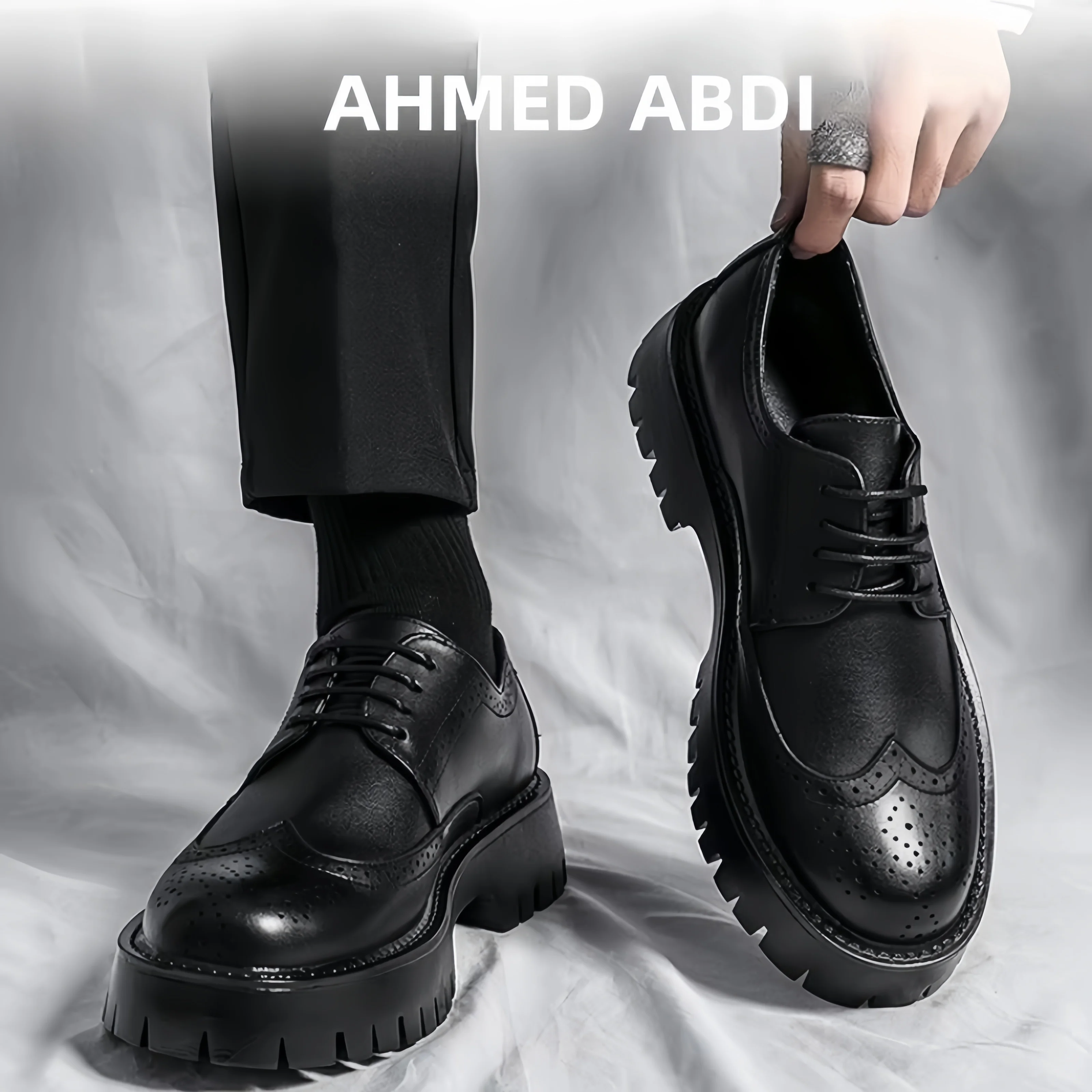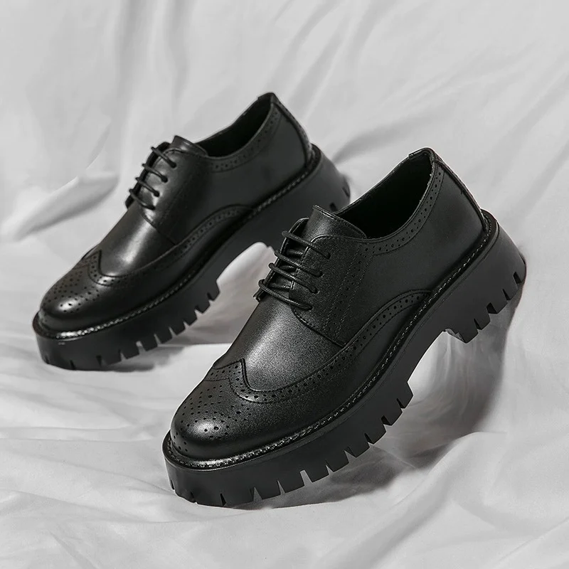 Autumn Men's Low-heel Black Carving Leather Shoes Thick Bottom Lace Height Increasing British Business Leisure Chunky Shoes