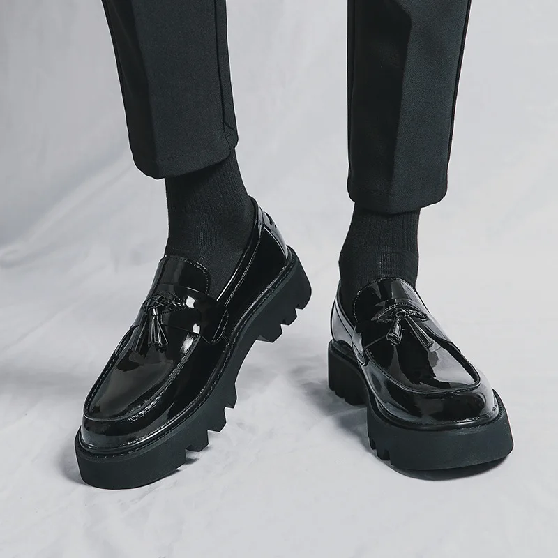 Men's Dress Shoes Thick Sole Tassels Black White Slip-On Loafer for Wedding Handsome Classy for Spring Summer Autumn Seasons