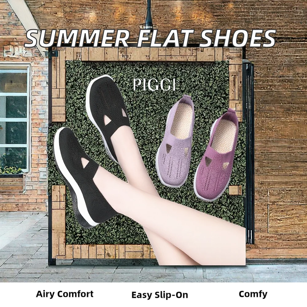 Women's Comfortable Flat Sneaker for Winter Healthy Outdoor Walking Casual Slip-On Shoes New Summer Design with Solid Pattern