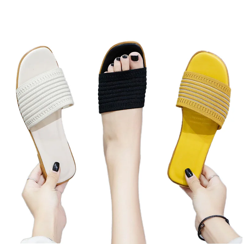 Women's Open Toe Summer Flat for Slippers Red Stockholm Fashion Knitting Lazy Trendy Fashion Accessory