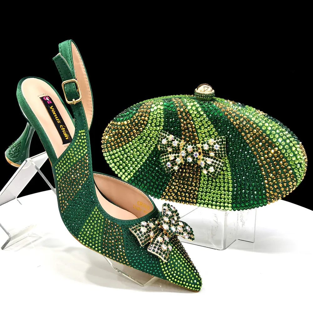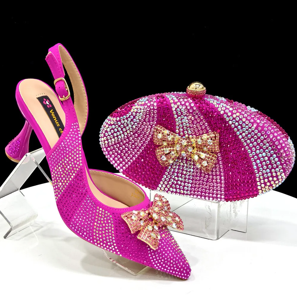 Banquet Plus Size Floral Bridal Shoes for Women Pointed Toe with Rhinestone Slip-On Closure Matched Water Bucket Handbag Set