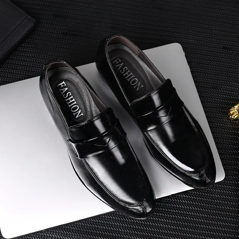 Men's British-Style Pointed Business Loafers Plus Size Soft-Sole Flat Bottom Leather Shoes Non-Slip Slow Running Casual Mesh