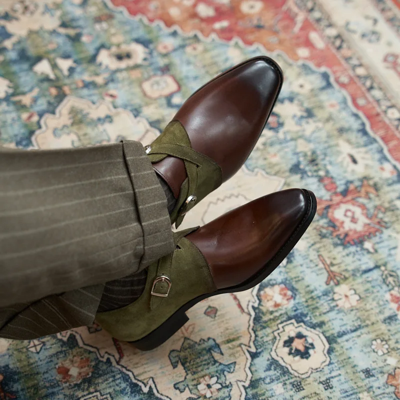 Men's Casual Low Cut Leather Shoes British Buckle Business Style Trendy Color Blocking Plus Size Sharp Pointed Breathable PVC