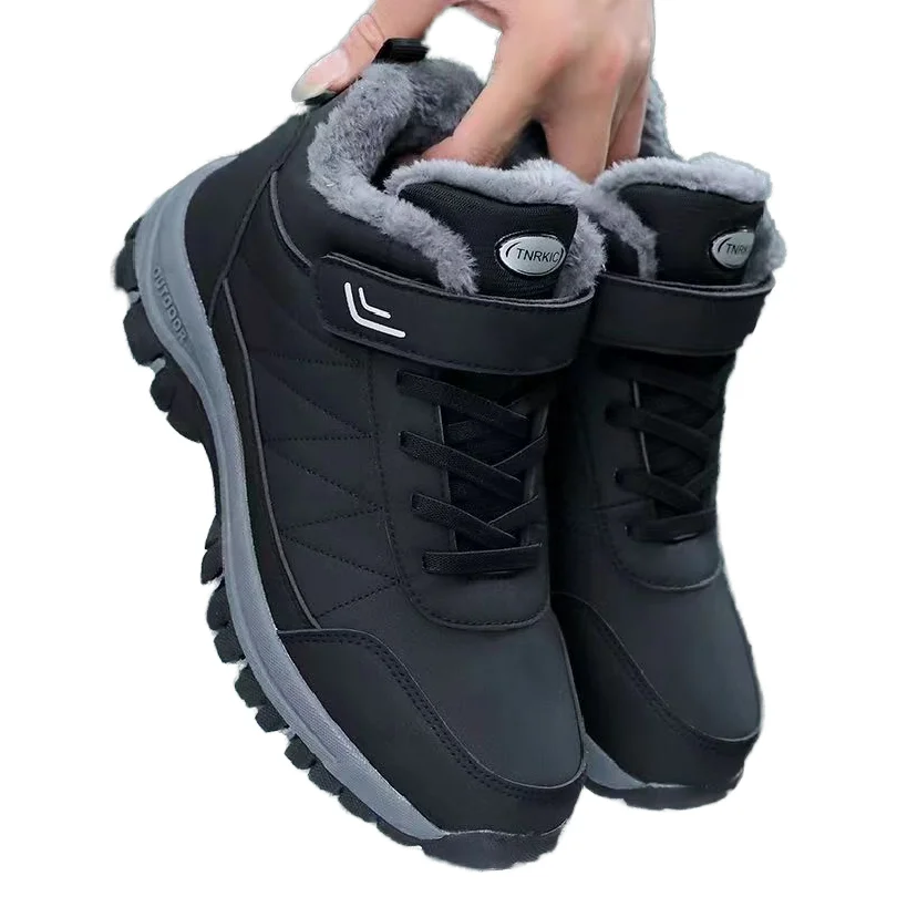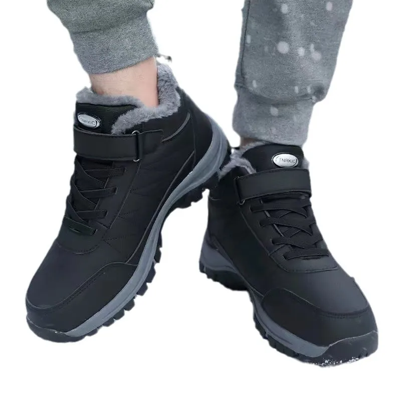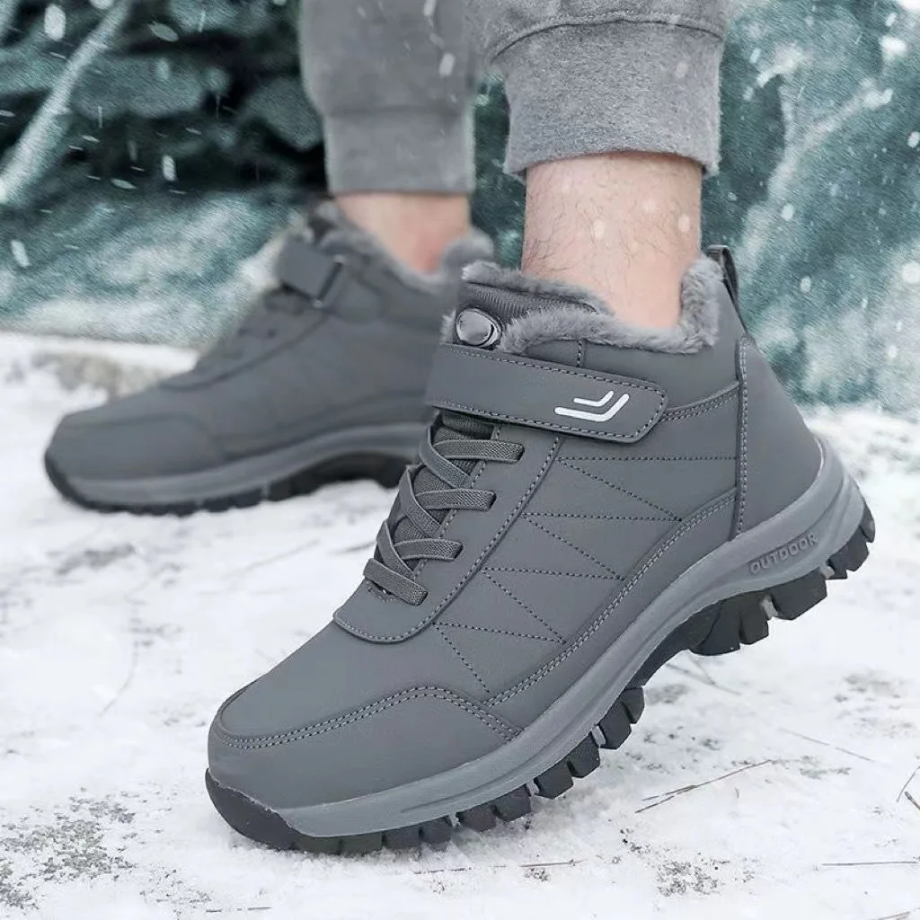 Men's Outdoor Water-Resistant Winter Hiking Boots with PU Leather Upper Fleece Lining Warm Snow Boots Rubber Insole for Walking