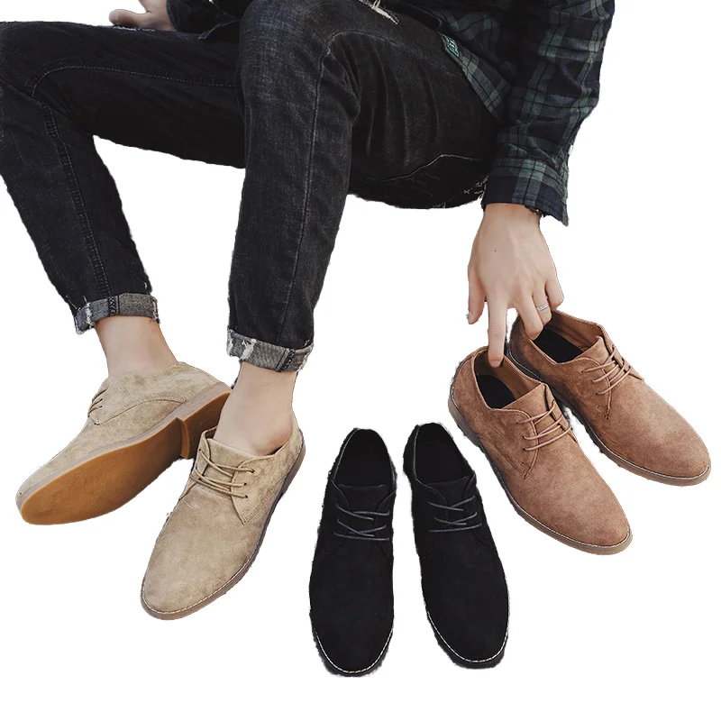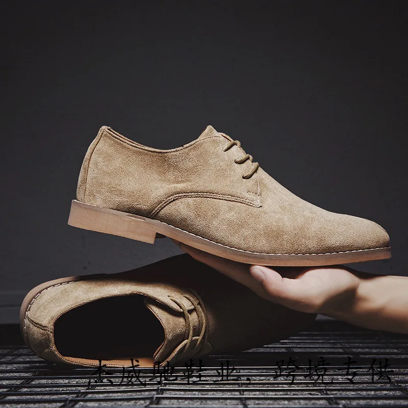 New Fashionable Casual Men's Walking Dress Shoes Large Size 39-46 Suede Flat Toe Closed Cushioning Leather Shoe Spring Summer