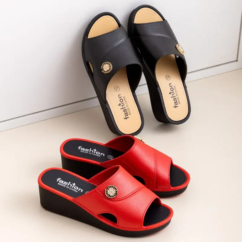 Women's Pvc Non-slip Thick Sole Wedges Slides Slippers Sandals For Wholesale Outdoor Trendy Home for Women & Ladies