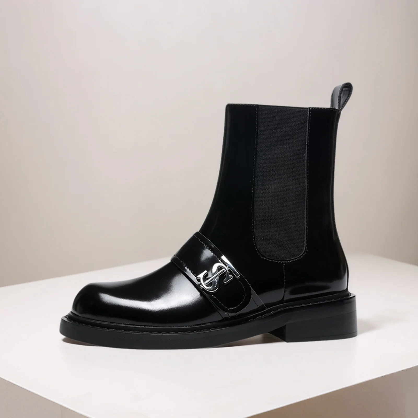 2026 New Fashionable Retro Metal Buckle Flat Bottom Short Boot Soft, Comfortable, Simple, Wide Tube Women's Short Boot