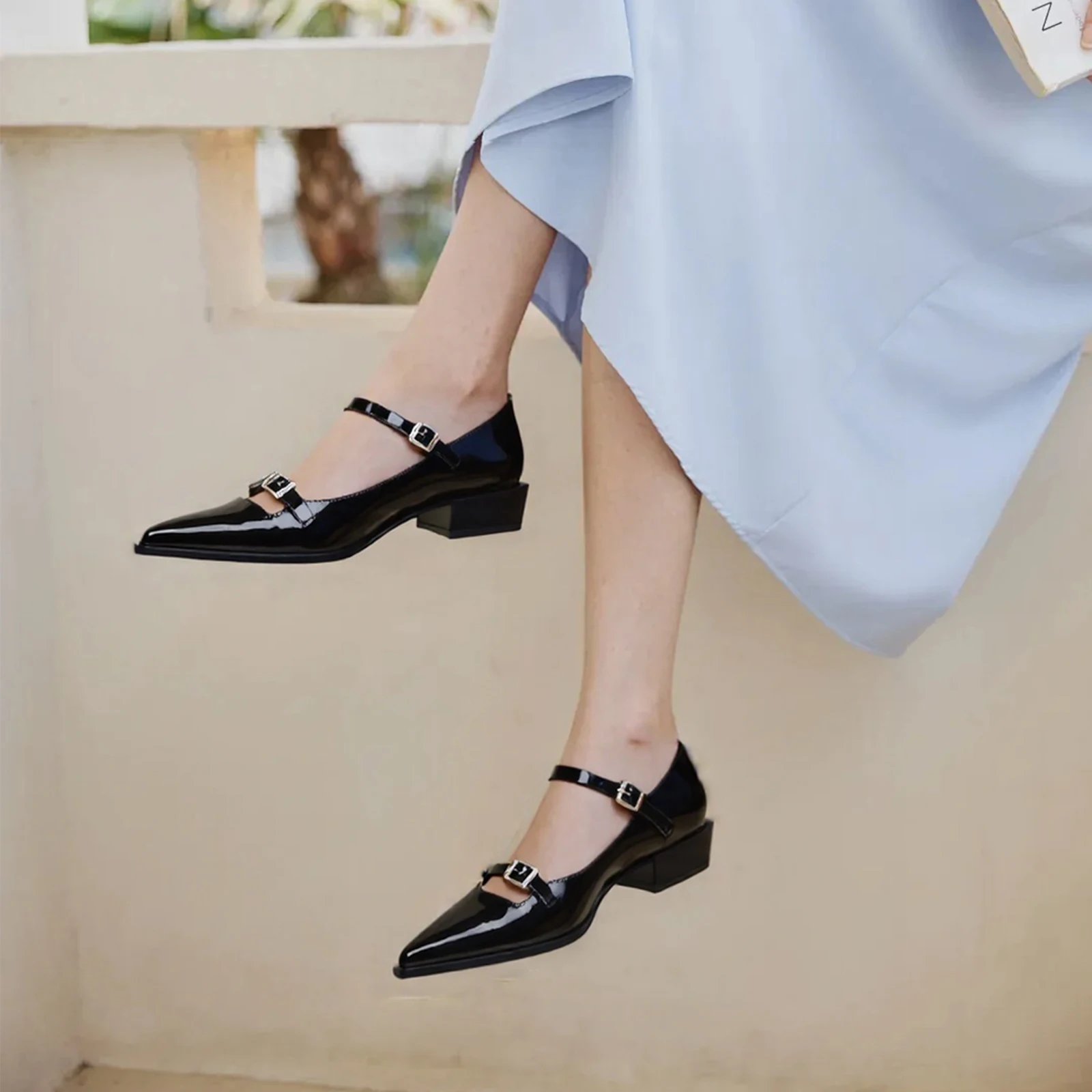 2026 Summer Collection Factory Wholesale Female Single Shoes Pointed Small Size Low Chunky Heel Leather Lining Mary Jane Style