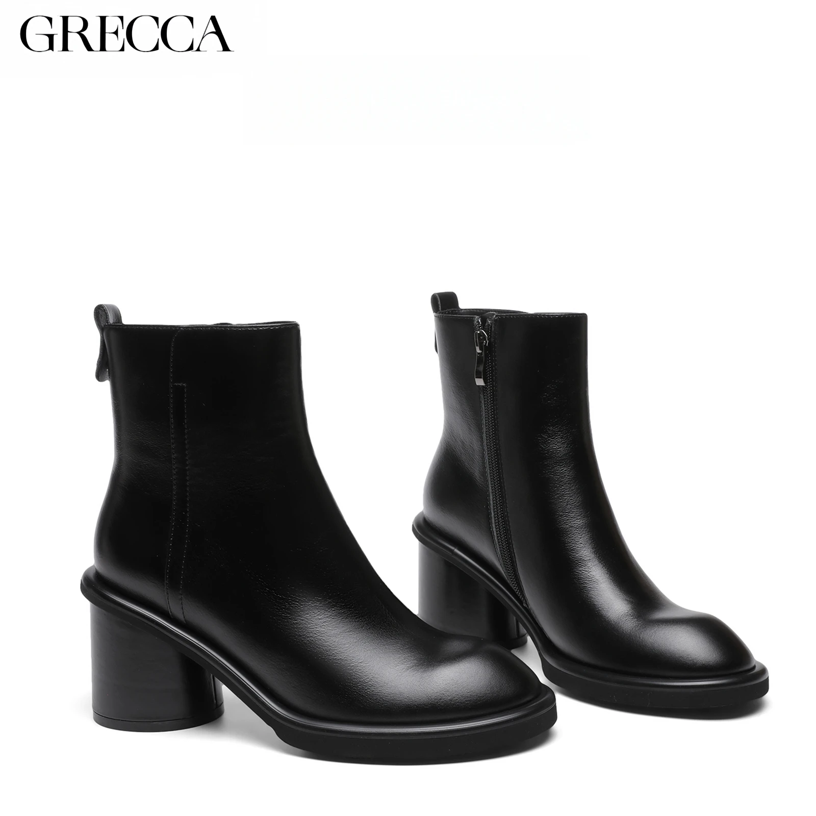 GRECCA Women's Stylish Retro Ankle Boots Toe Chunky Heel Height Increasing Side Zipper for Easy Wear Comfortable for Daily