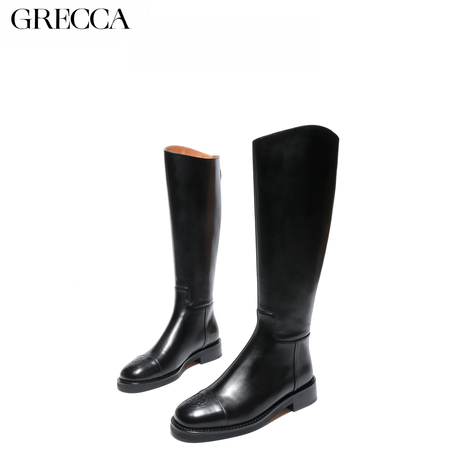 Women's Black Leather Knee - High Boots, Genuine Leather, Classic Design, Comfortable Flat Heel, Ideal for Daily/Commute