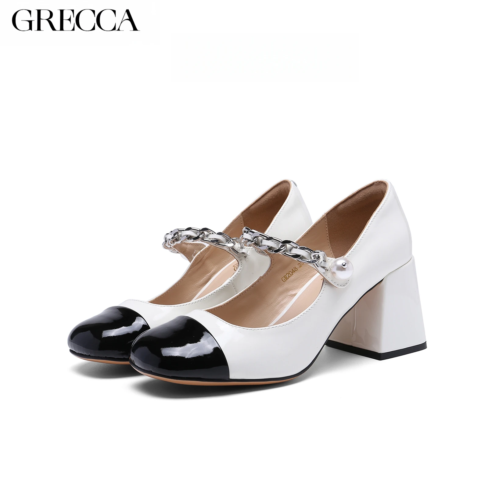 China Factory Custom Black White Mary Jane Dress Leather Thick High Heel Pump Shoes for Women New Styles
