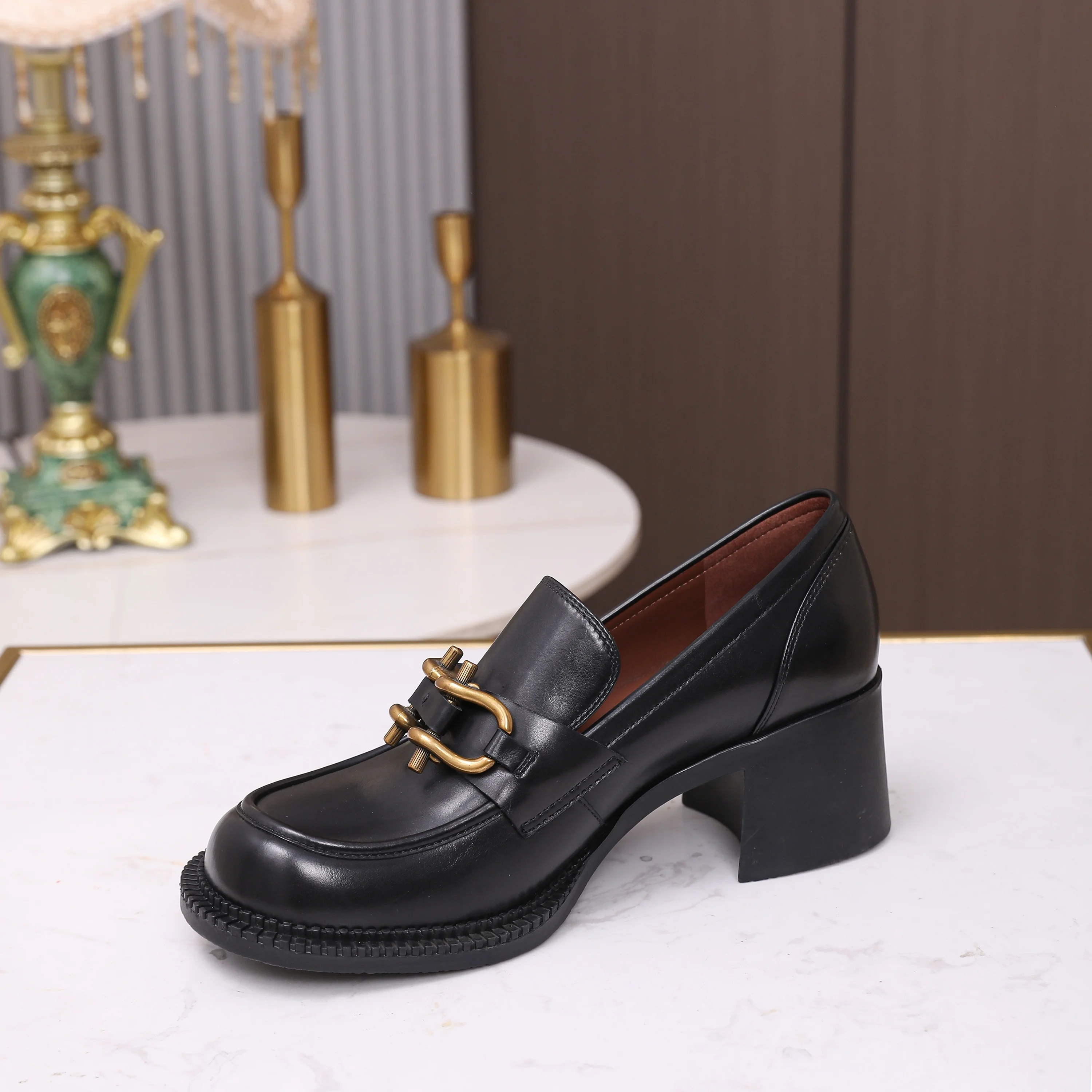 Customized Logo Black Anti-Slip Mary Jane Loafer Shoes for Women High Heels PU Comfortable Slip-On OEM/ODM Fashion Trend Support