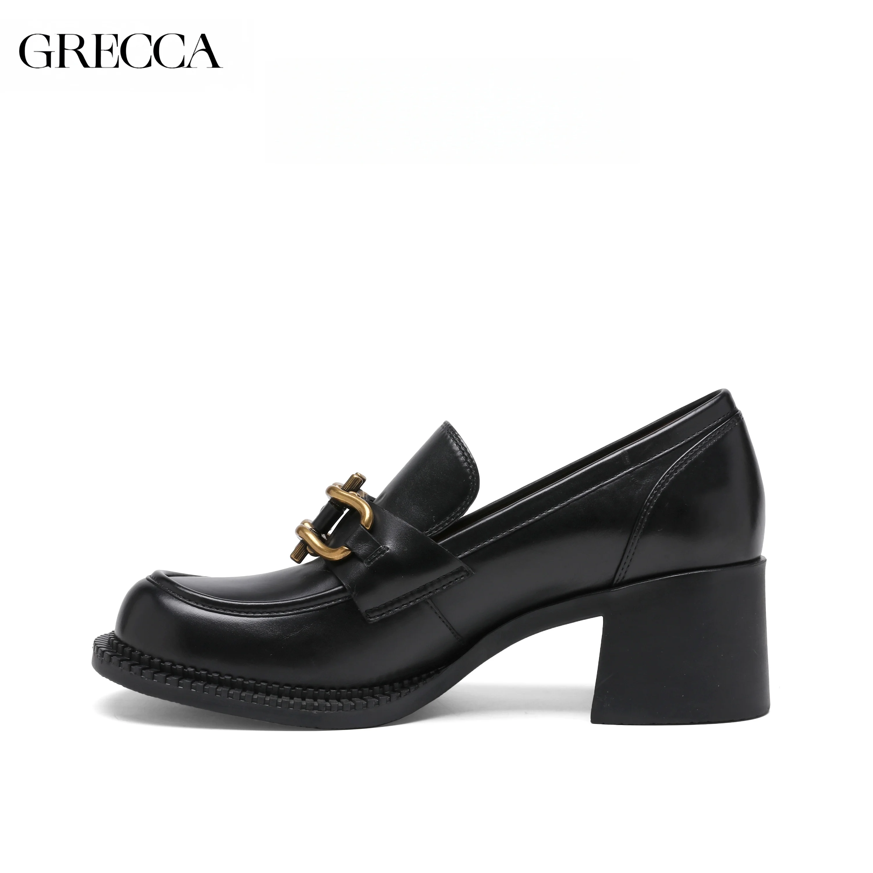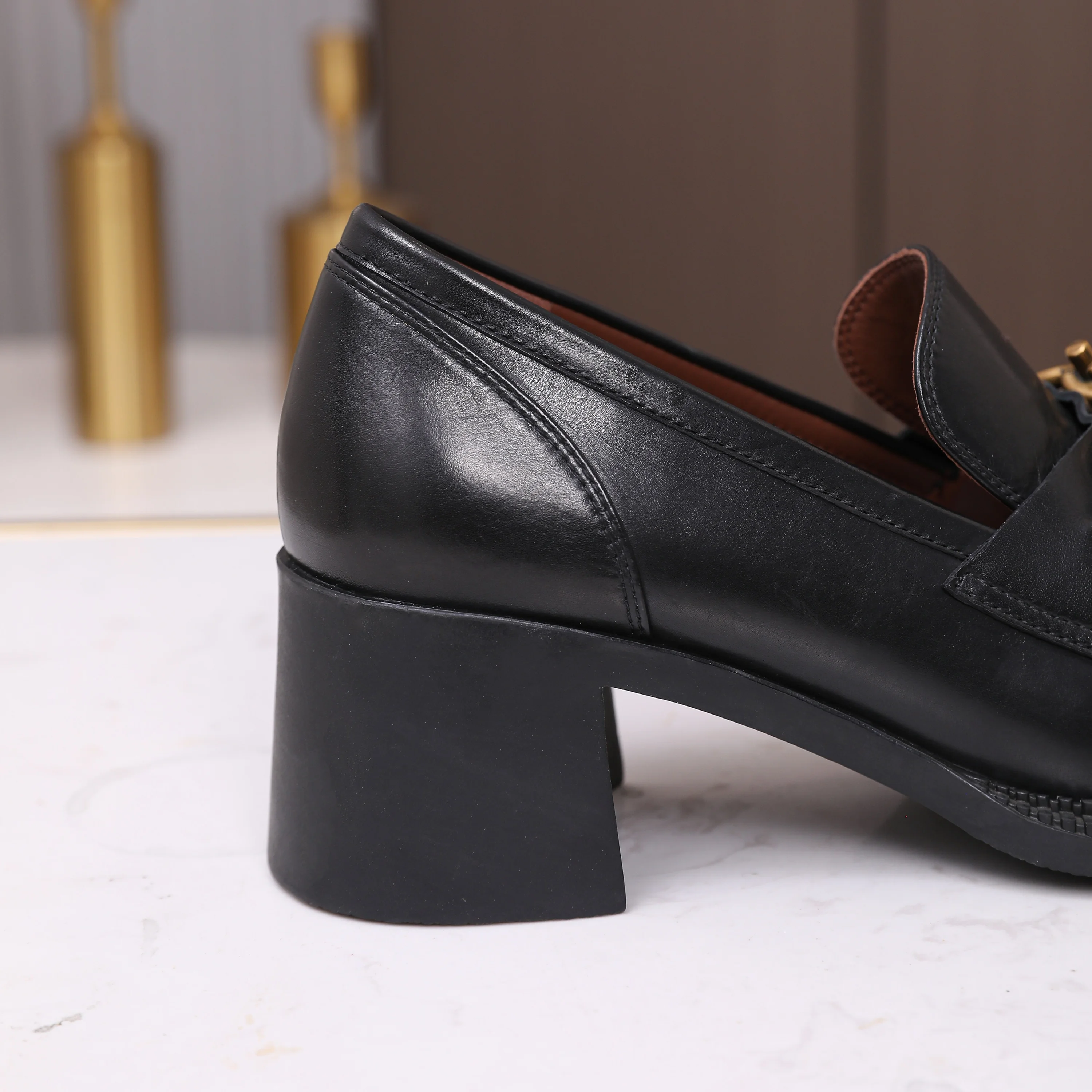 British Retro Black Women's Loafers Single-Layer High Heels with Heel Slip-On Closure Fashionable Comfortable and Soft