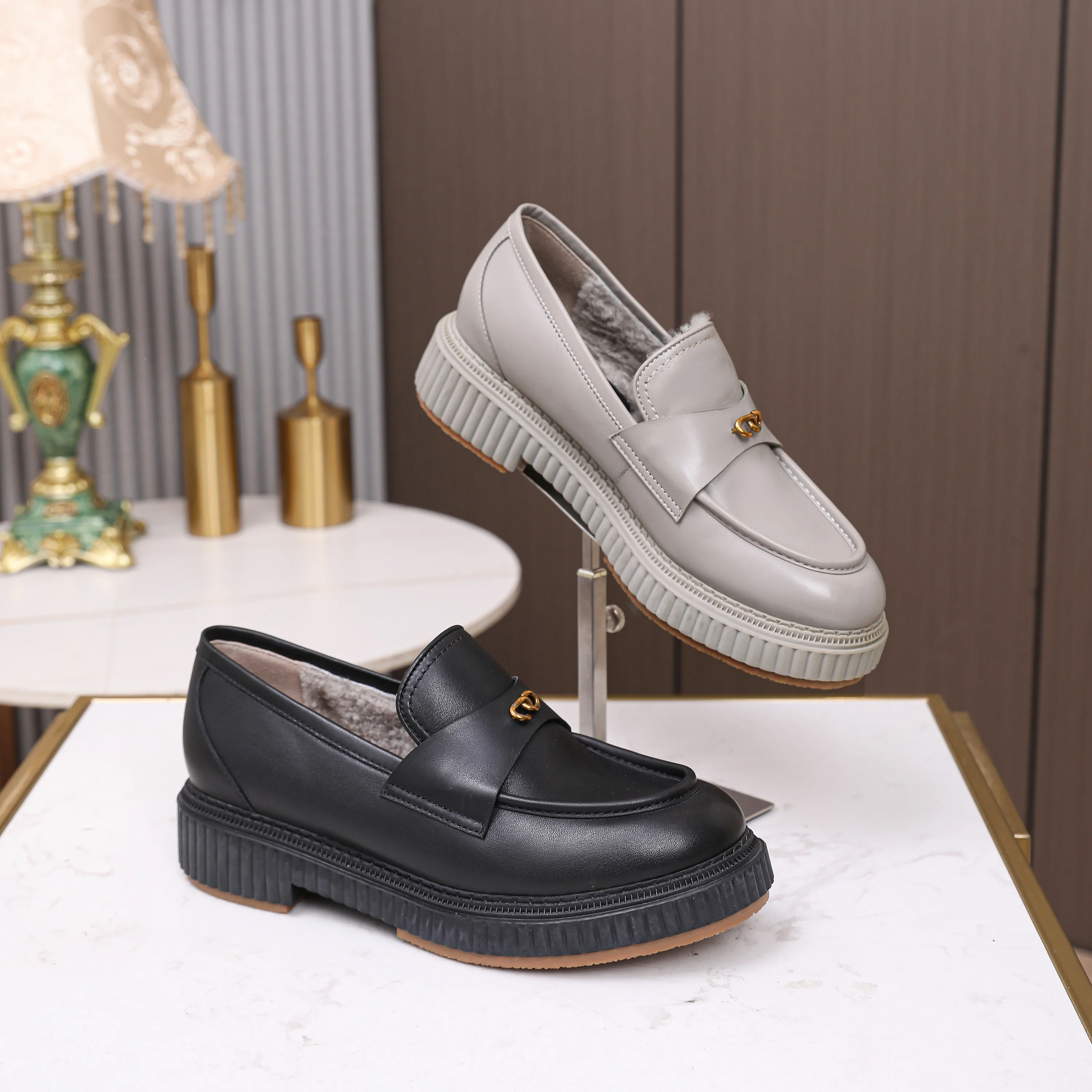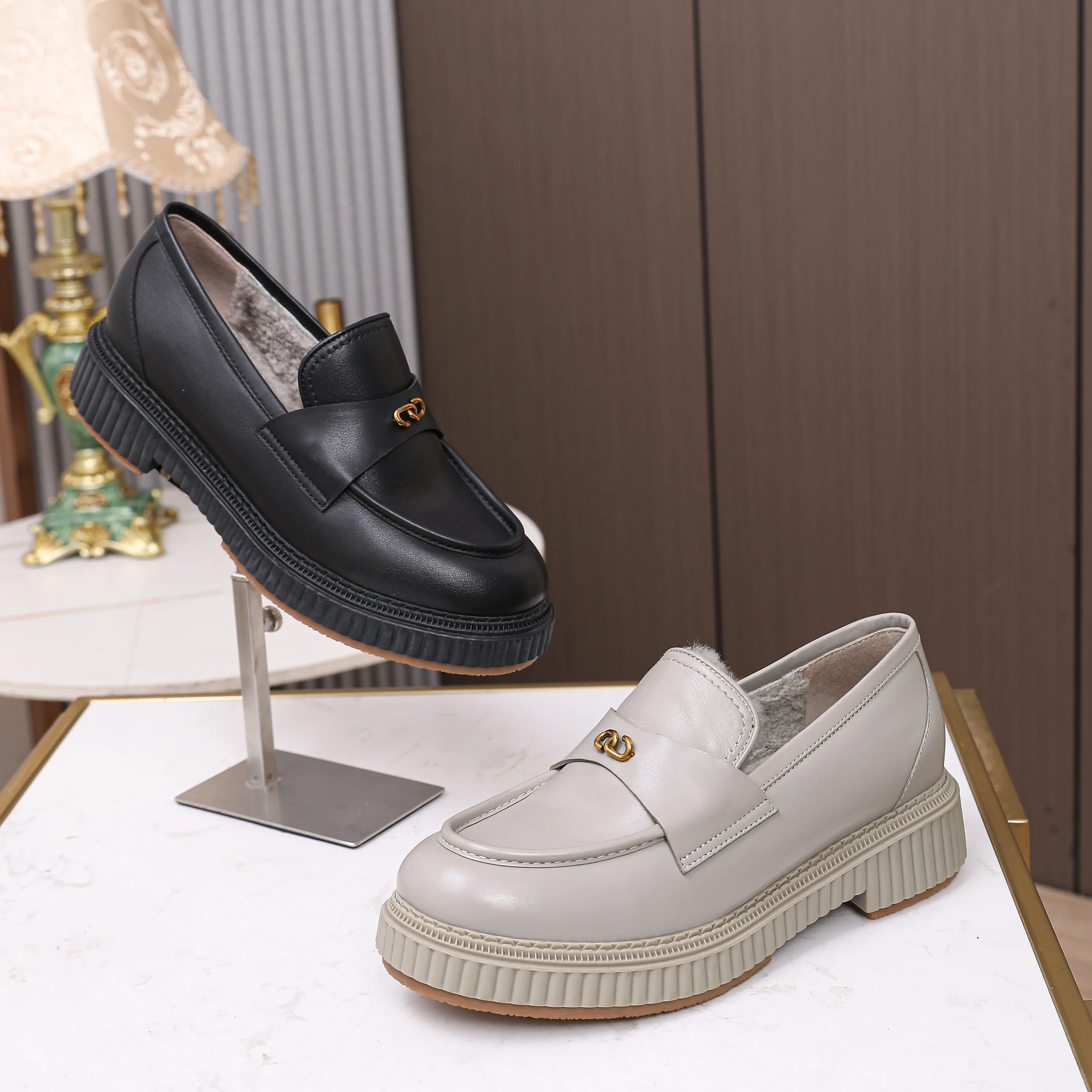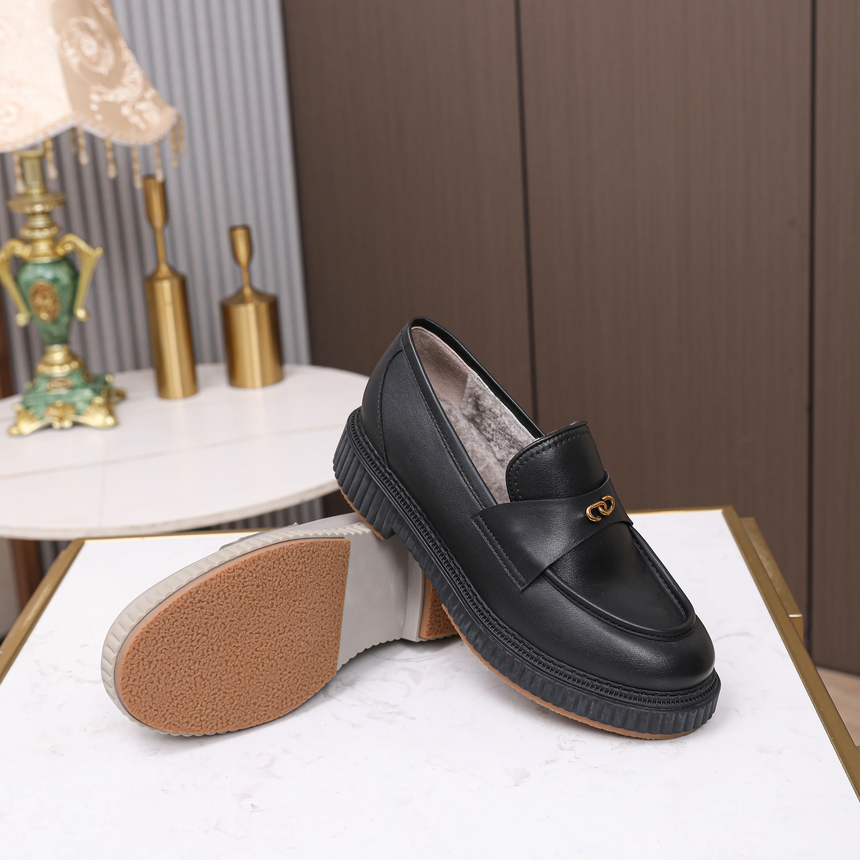 Women's Heeled Shoes Stylish Leather Loafers with Metal Accents Comfortable Platform Heels for Daily Office Wear