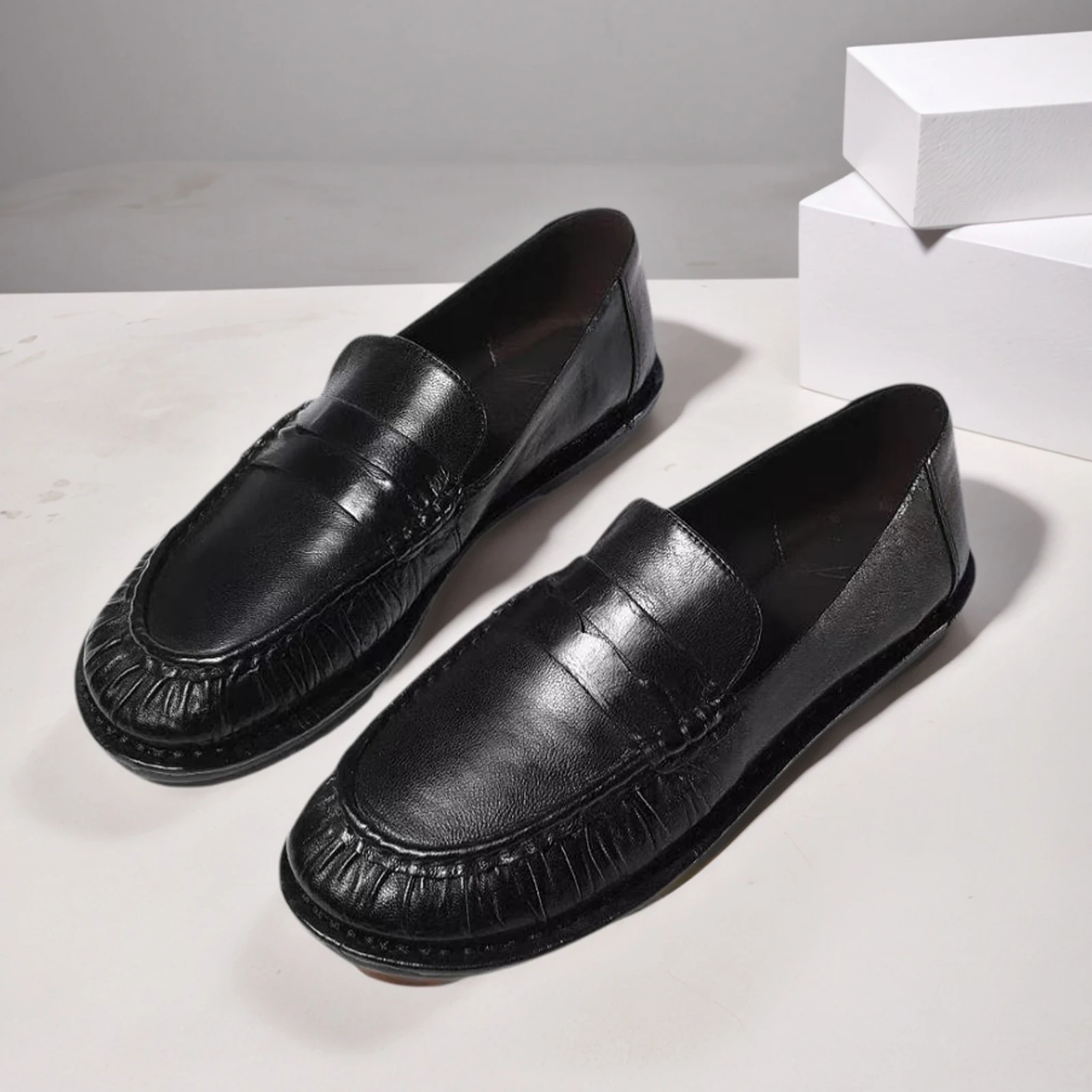 Women's Comfortable Slip-On Flat Loafers Black and Brown Genuine Leather Insole Soft Daily Wear Flats
