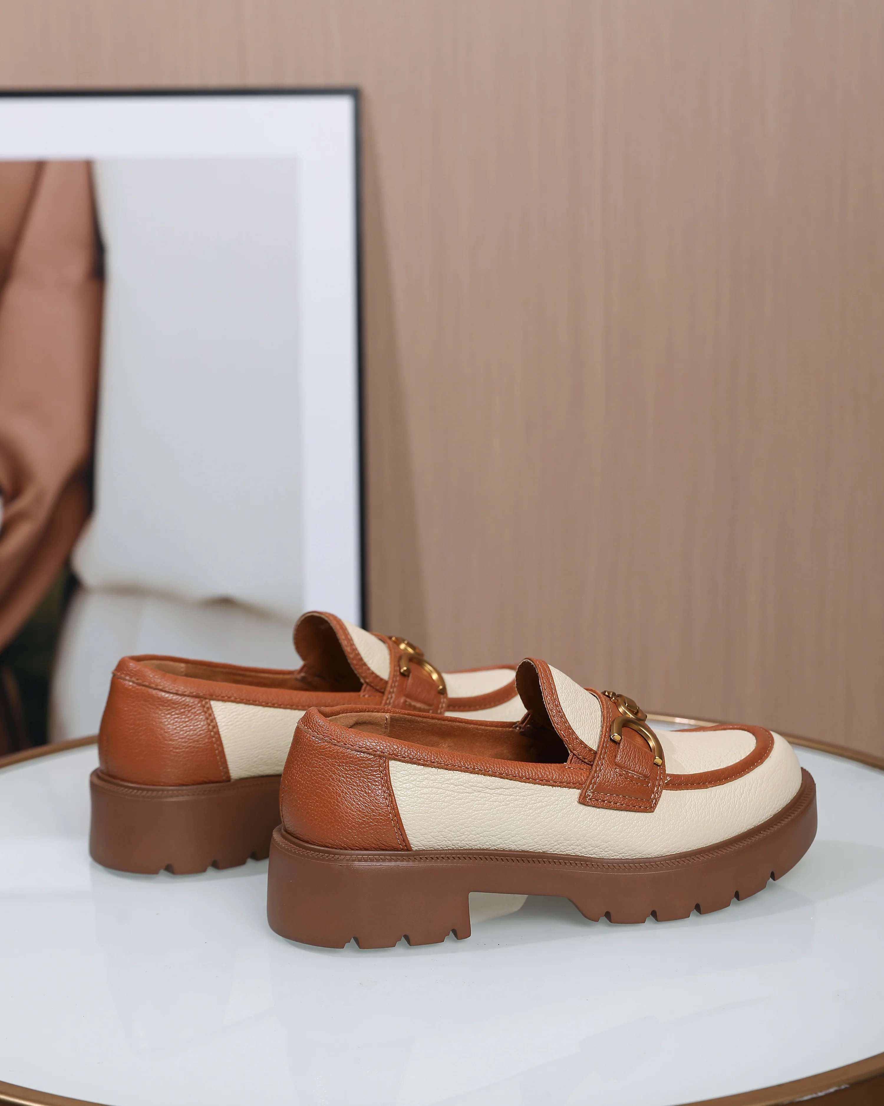 New Style British-style Women's Genuine Leather Ballet Flats-Soft Sole Anti-slip Thick Soled Flat Loafers Single Strap Shoes