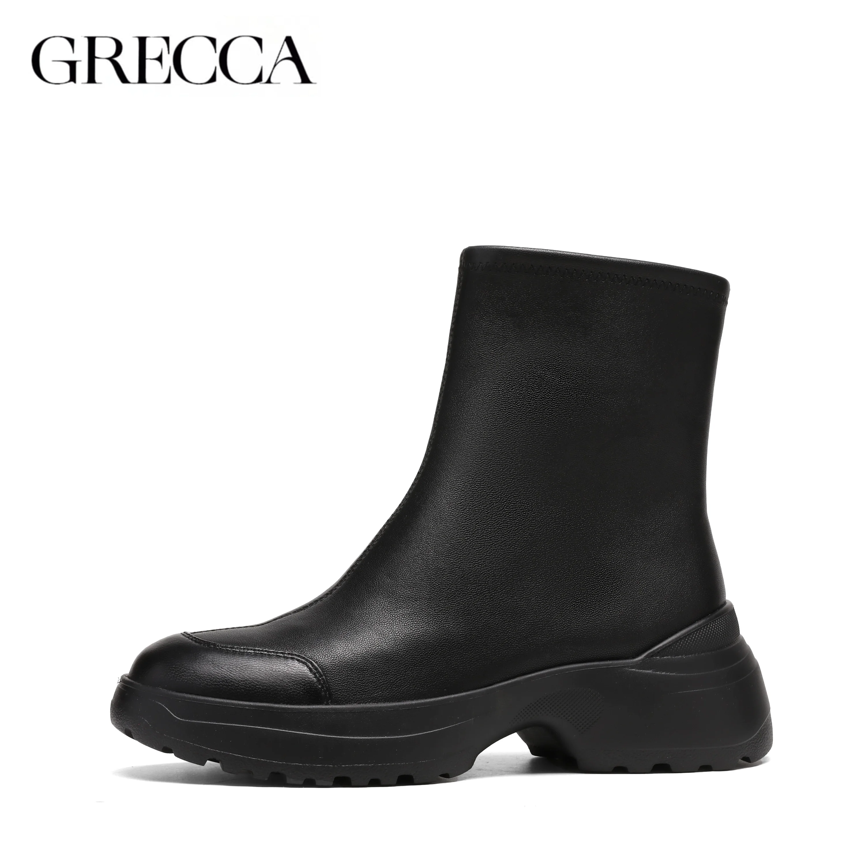 Luxury Genuine Leather Ankle Women Boots Slip-On Autumn Fashion Winter Naked Black 5cm Chunky Heel High-grade Shoes