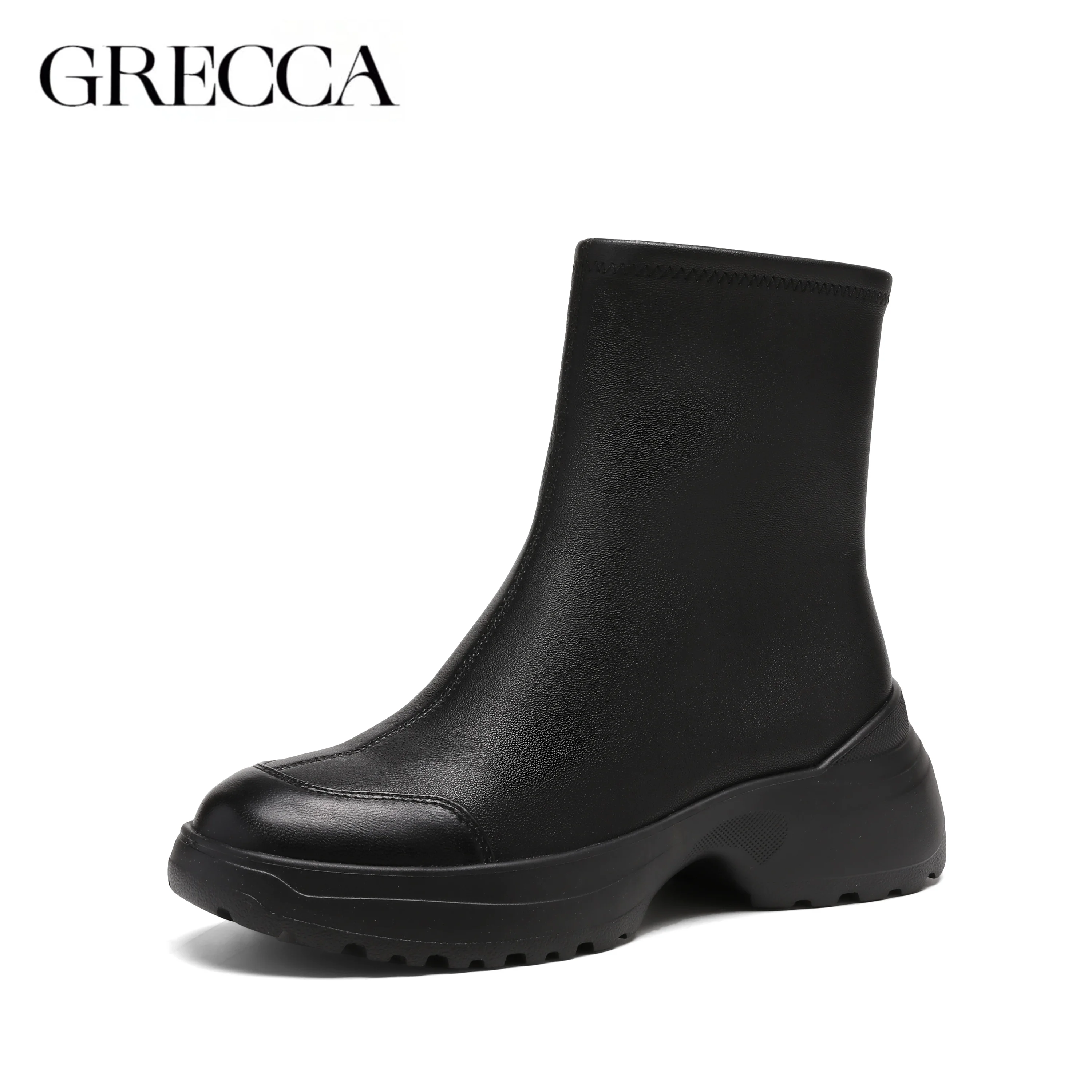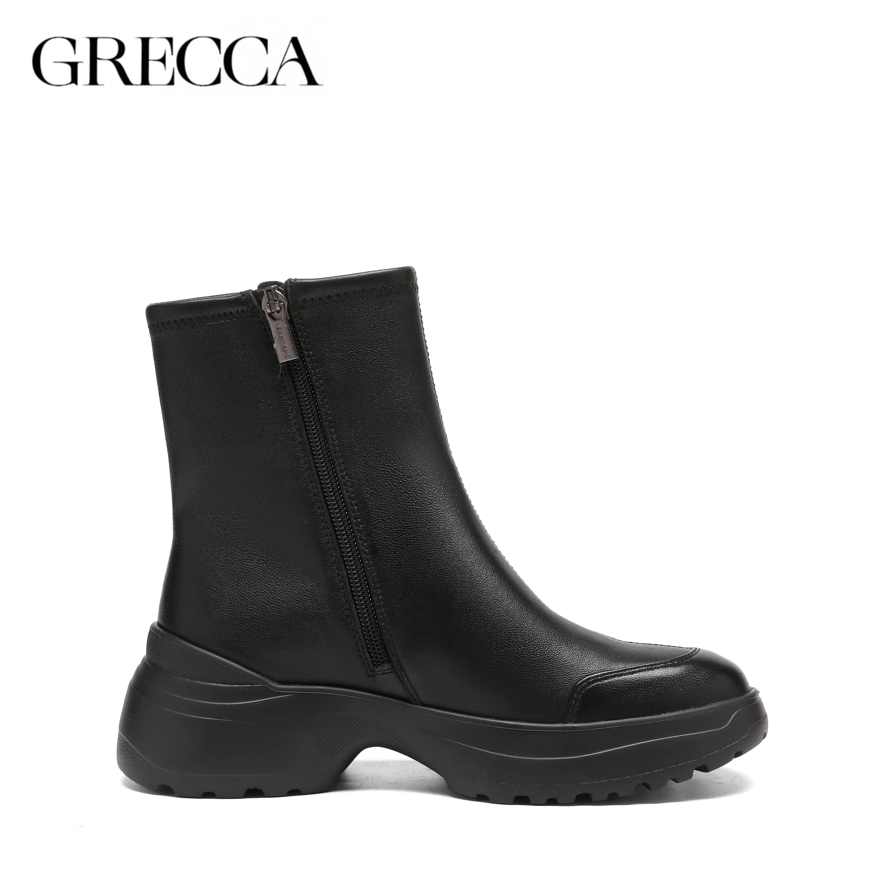 Custom Black Genuine Leather Waterproof Side Zipper Comfortable Casual Winter Boots Elegant Mid-Calf Boots Women's Boots