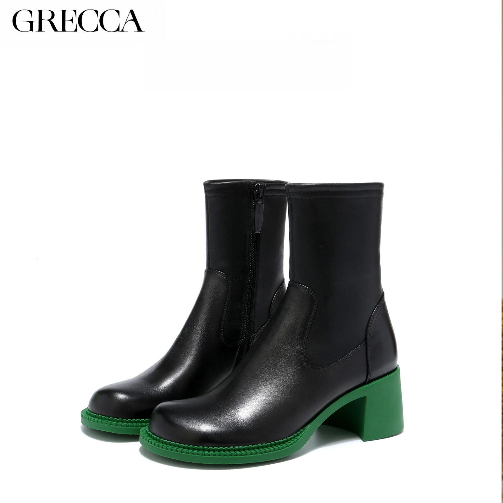 Women's Retro Ankle Boots Black Leather Green Heel Sole Slip-On Closure Chunky Heel Stylish Comfortable Height Increasing