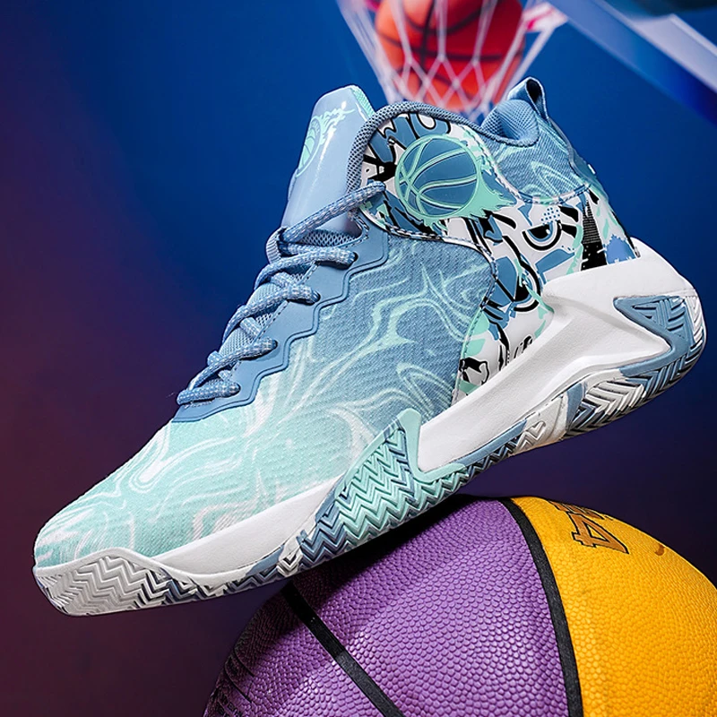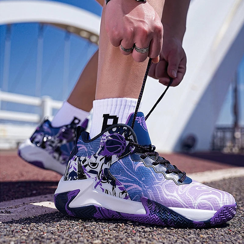 Breathable Patchwork Upper Thickened Ankle Support Design Lace-up Closure Non-slip Gradient Color Outdoor Basketball Shoes