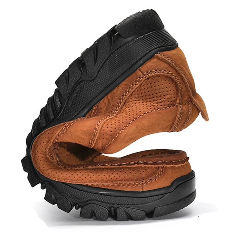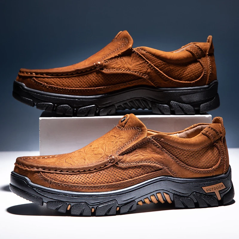 Luxury-Sleek Men's Closed-Round-Toe Shoes Stable Comfortable Non-Slip Rubber Outsole Shoes Slip-on Formal Casual Leather Shoes