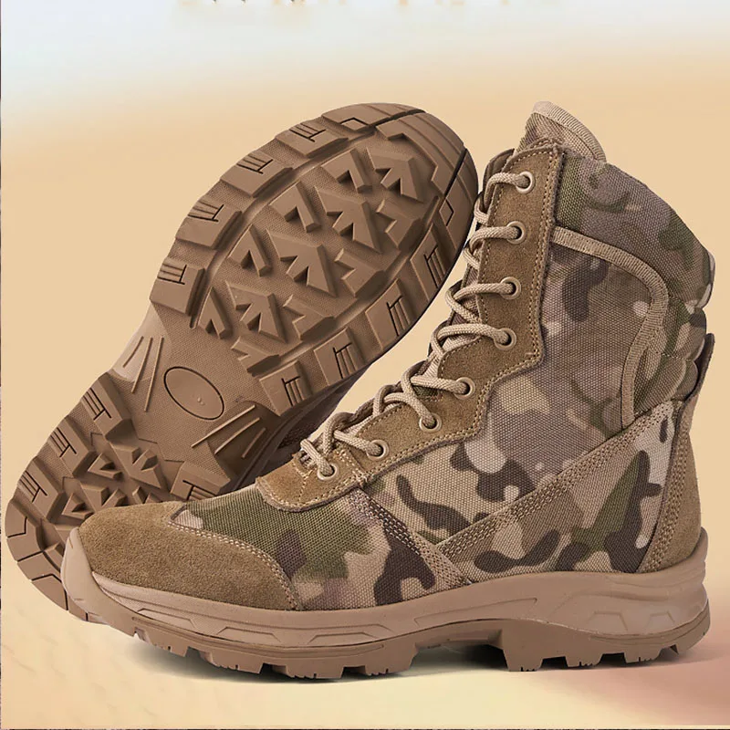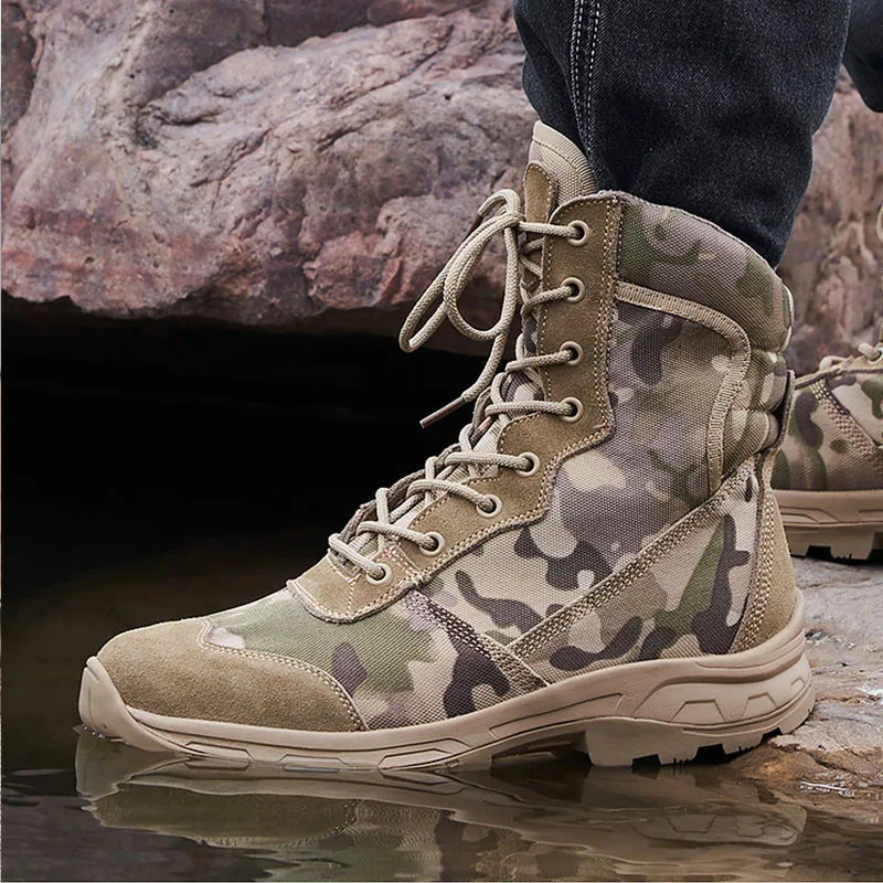 Custom Men's Camouflage Tactical Boots Durable Non-Slip Desert Ankle Boots Lace up Training Hiking Shoes Hunting Work Boots