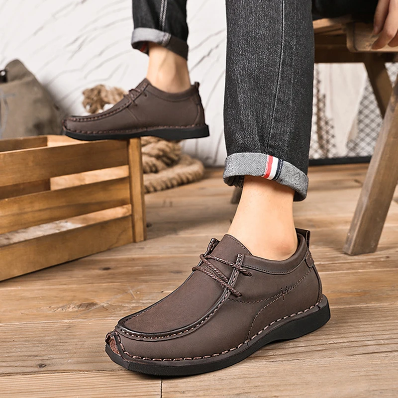 2026 Hot Selling Thick-Soled Height-Increasing Waterproof Breathable Casual Leather Shoes Soft Sole Versatile Flat Work Shoes