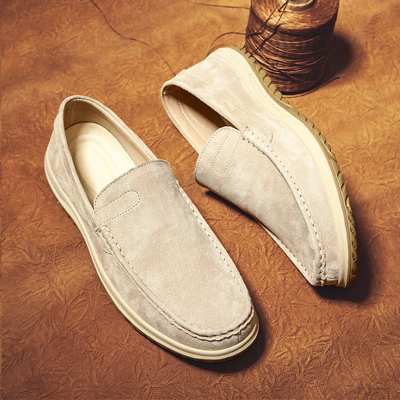 Spring Men's Luxurious Shoes Leather Breathable Waterproof Upper Lightweight Casual Shoes Wedding Formal Occasion Slip-on Shoes
