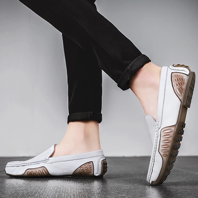 Men's Genuine Leather Formal Business Loafers Flat-bottomed Soft-soled Anti-slip Large-sized Casual Driving Shoes