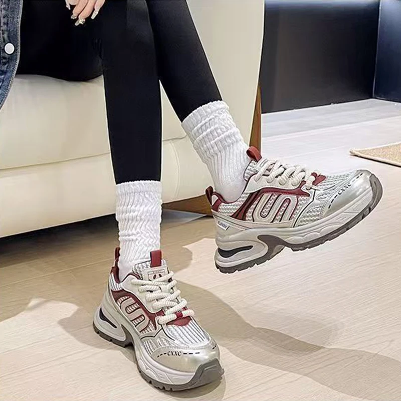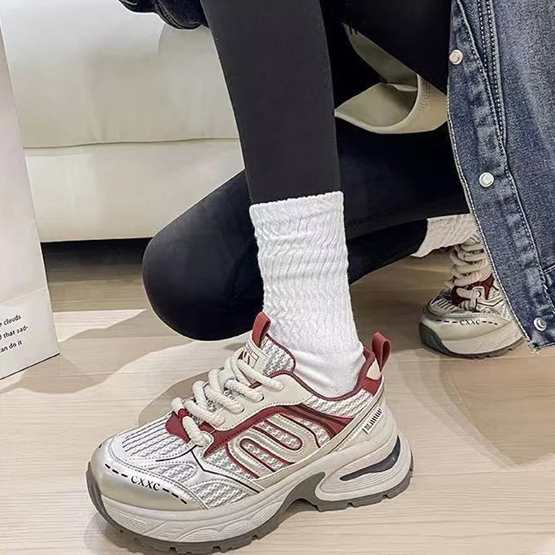 Thick Sole Height-increasing Shock-absorbing Anti-collision Toe Breathable Upper Heel Pull Tab Convenient Women's Trendy Shoes