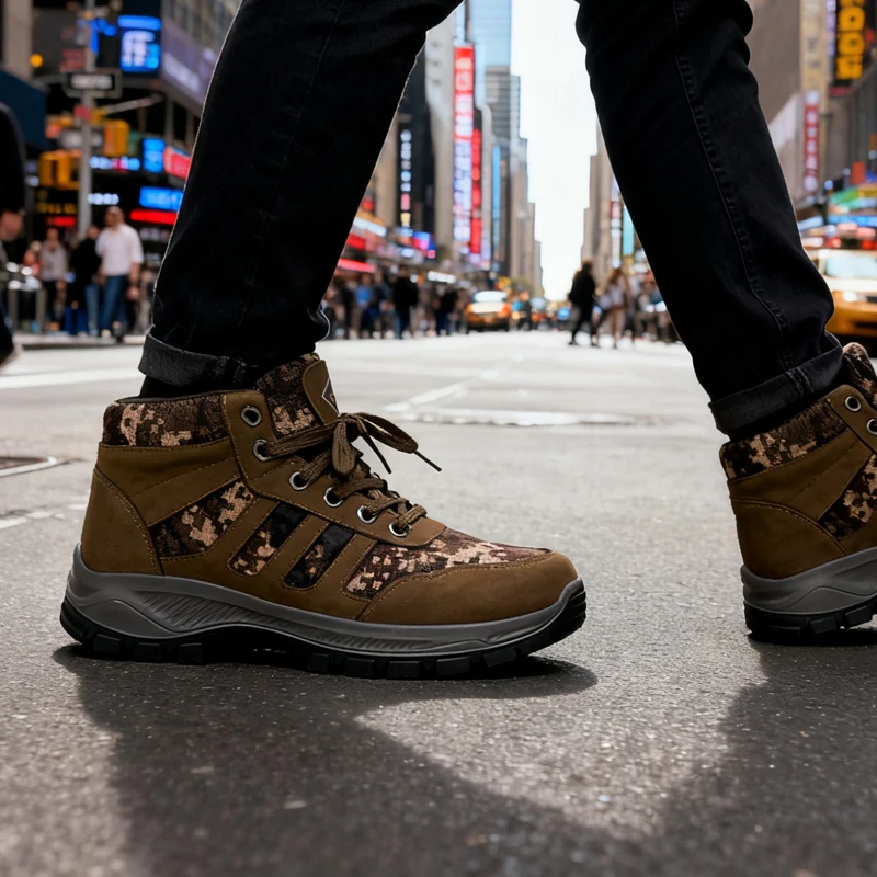 Outdoor Popular Men's Shoes Lace-up Wear-Resistant Anti-Slip Rubber Sole Shoes Building Sites Camouflage Pattern Casual Shoes