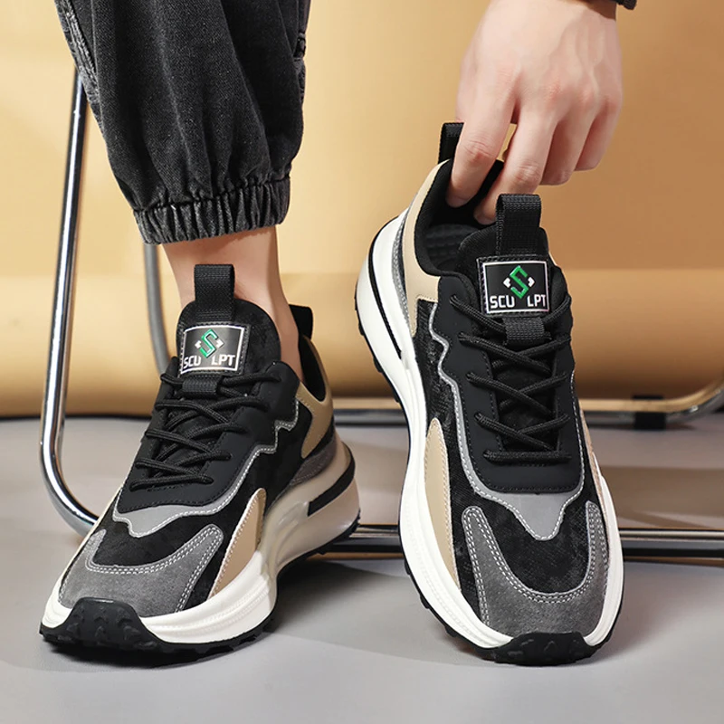 New Men's Shoes Summer Breathable Waterproof Leather Sports Leisure Trendy Thick Soled Sport Shoes Skateboarding Running Shoes