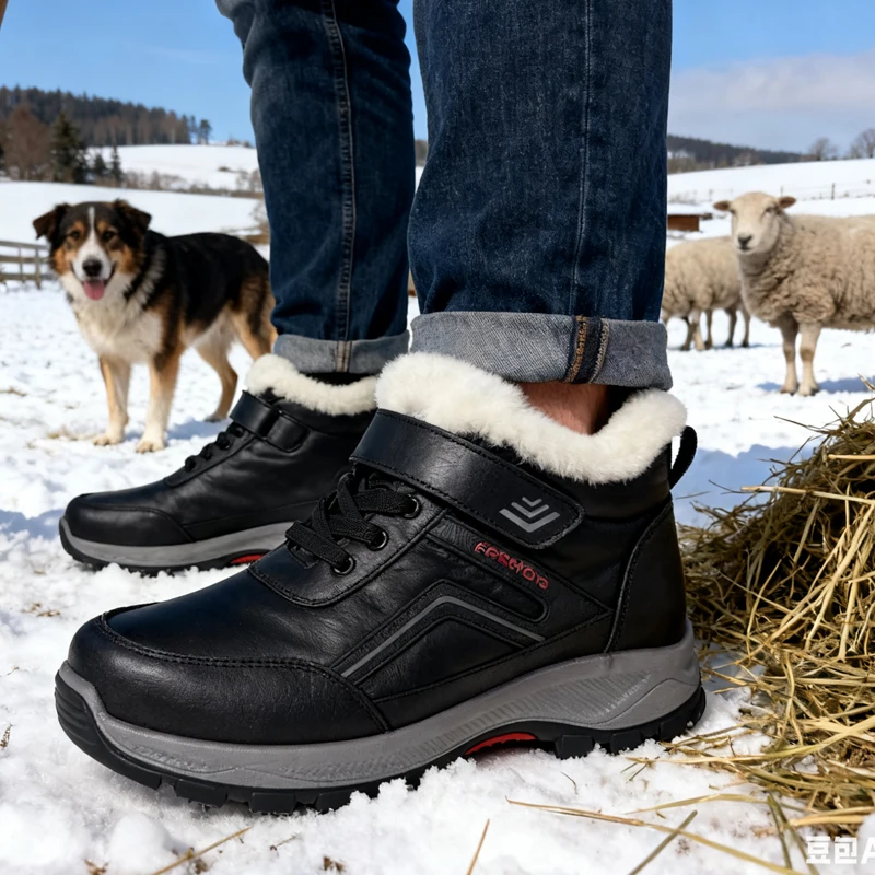 In Stock Fashionable Men Shoes Winter Warm Plus Lining Comfortable Shoes Hook and Loop Fasteners Commuting Outdoor Casual Shoes