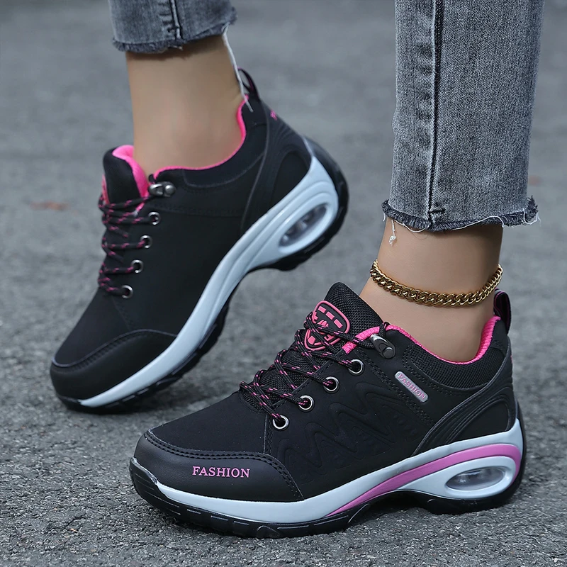 New Women's Outdoor Sports Shoes Anti-slip Soft-soled Height-increasing Lace-up Comfortable Casual Shoes